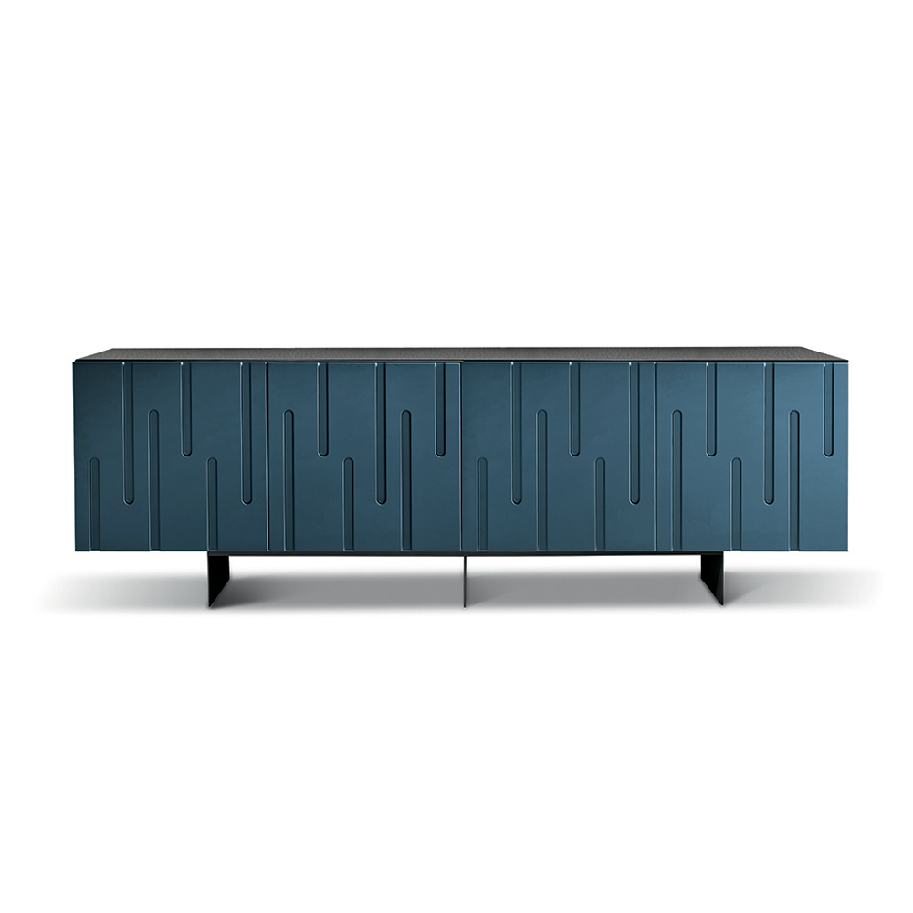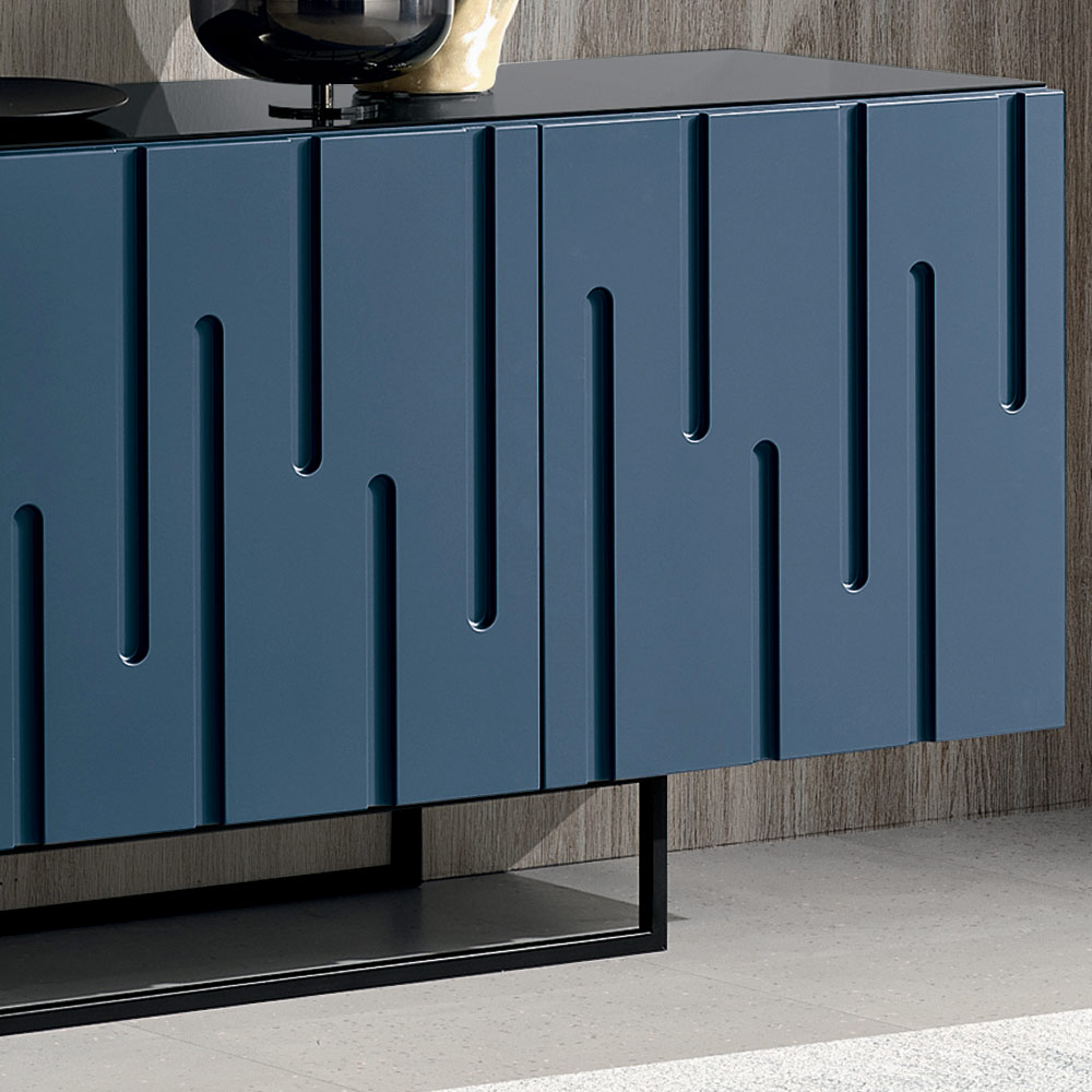 Made in Italy designer sideboard with stalactite-effect engraved doors and metal base