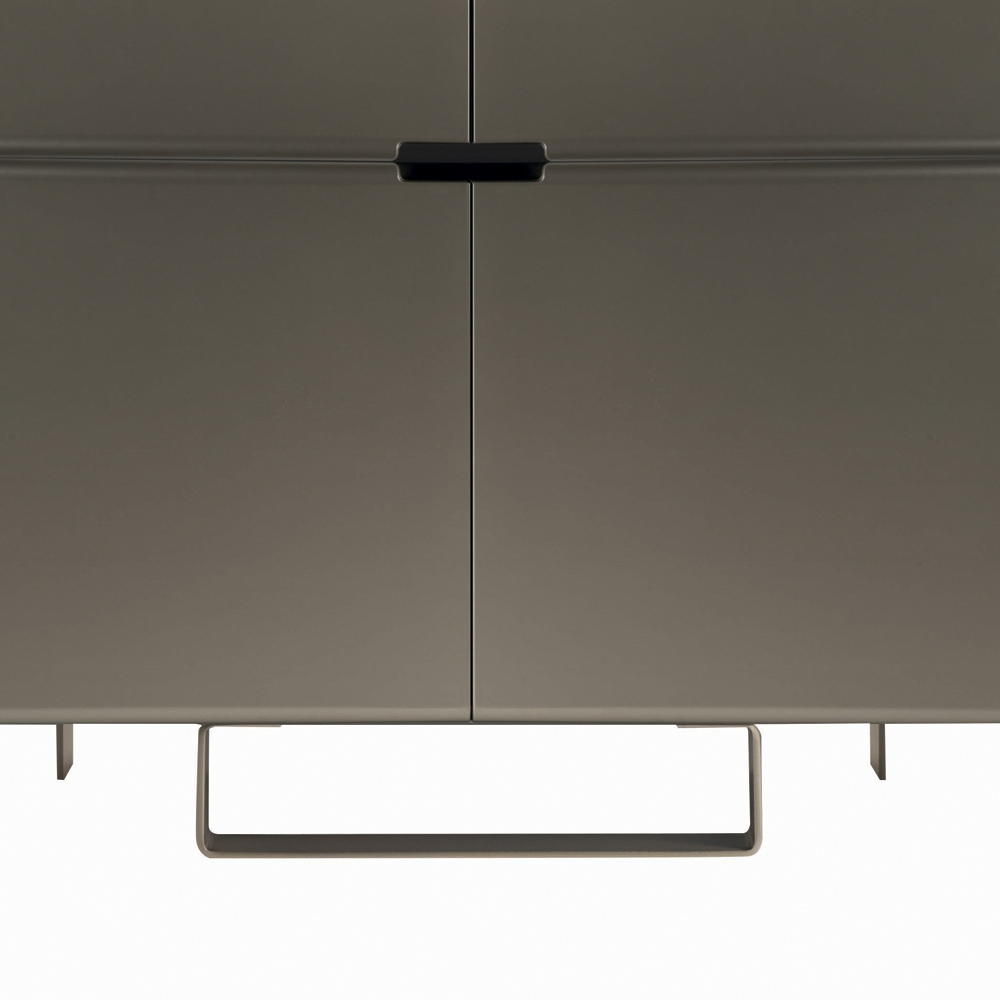 Living room sideboard with a modern style completely made in Italy composed of iron feet with nickel finish and charcoal finish mdf shell with nickel finish doors . The use of simple but resistant materials transform this product in a piece of furniture with great versatility and an attractive and interesting appearance.