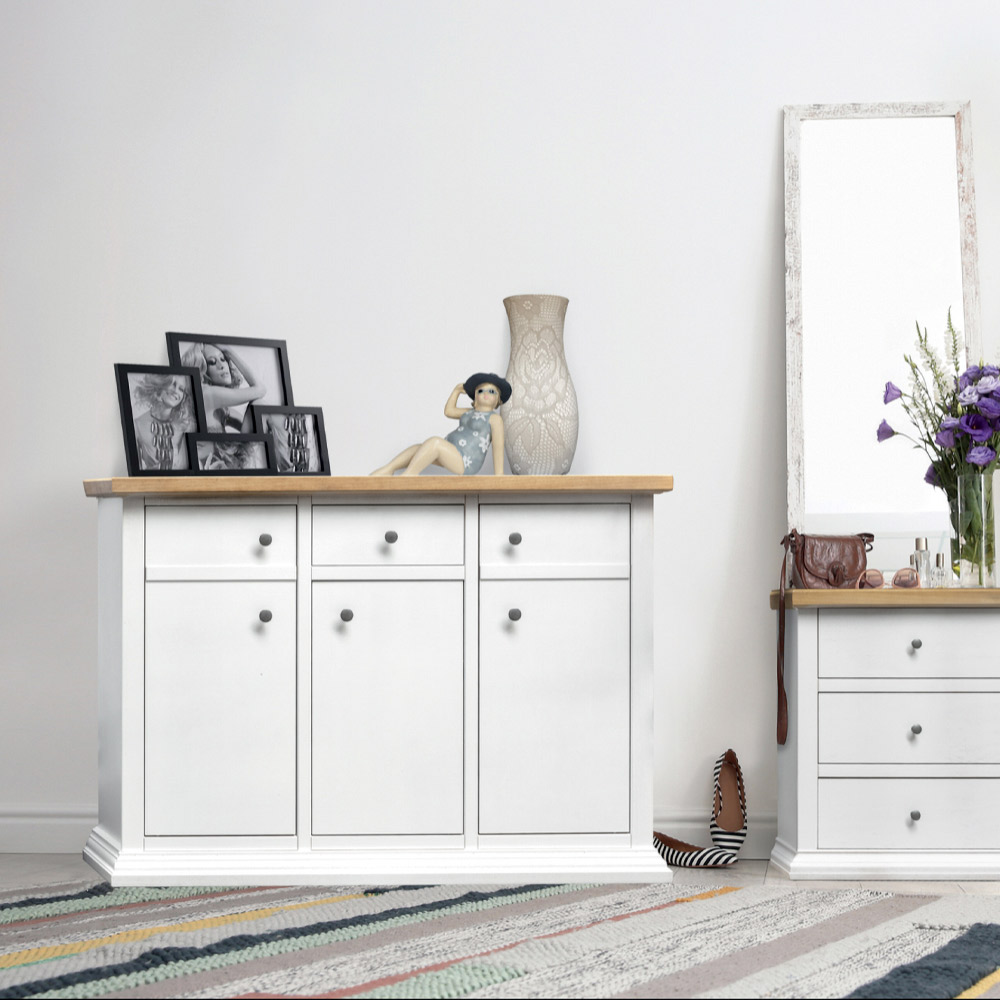 Available finishes:- White waxed with natural wood top