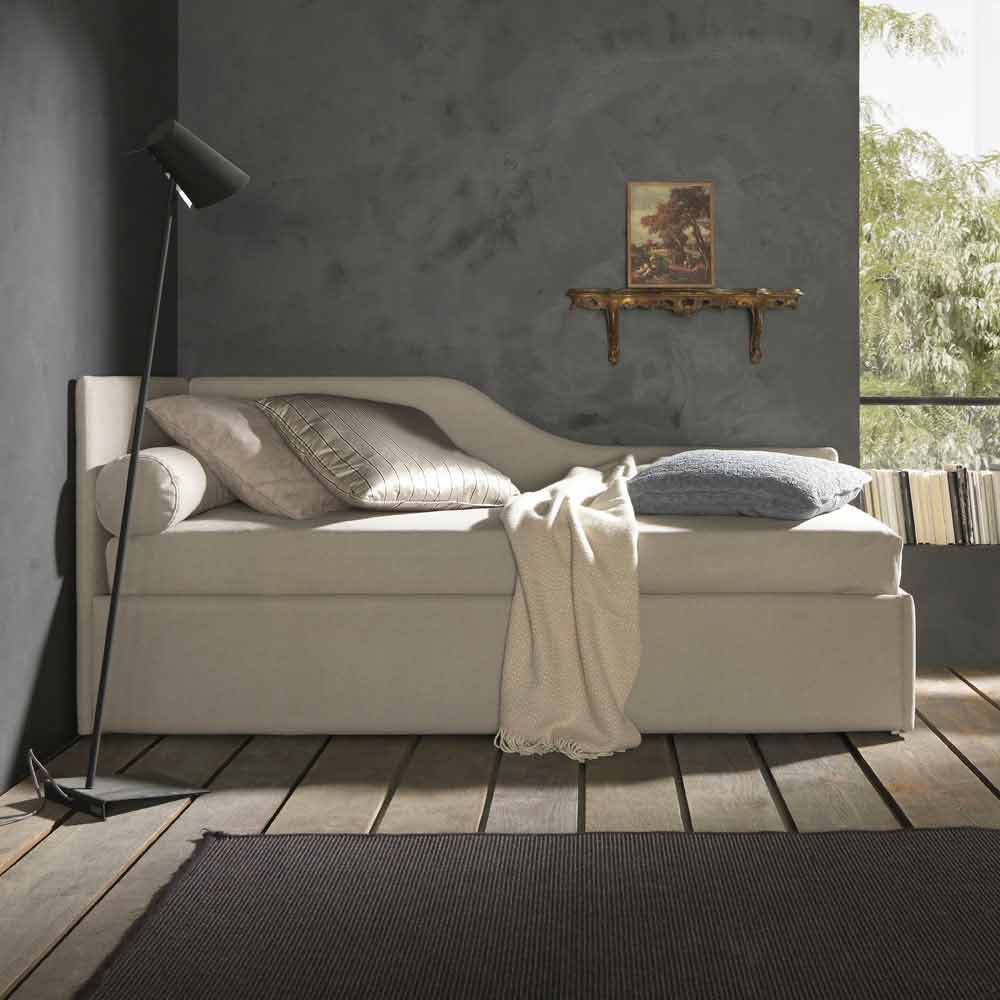 Single bed with shaped headboard, Queue 8 by Bolzan, made in Italy