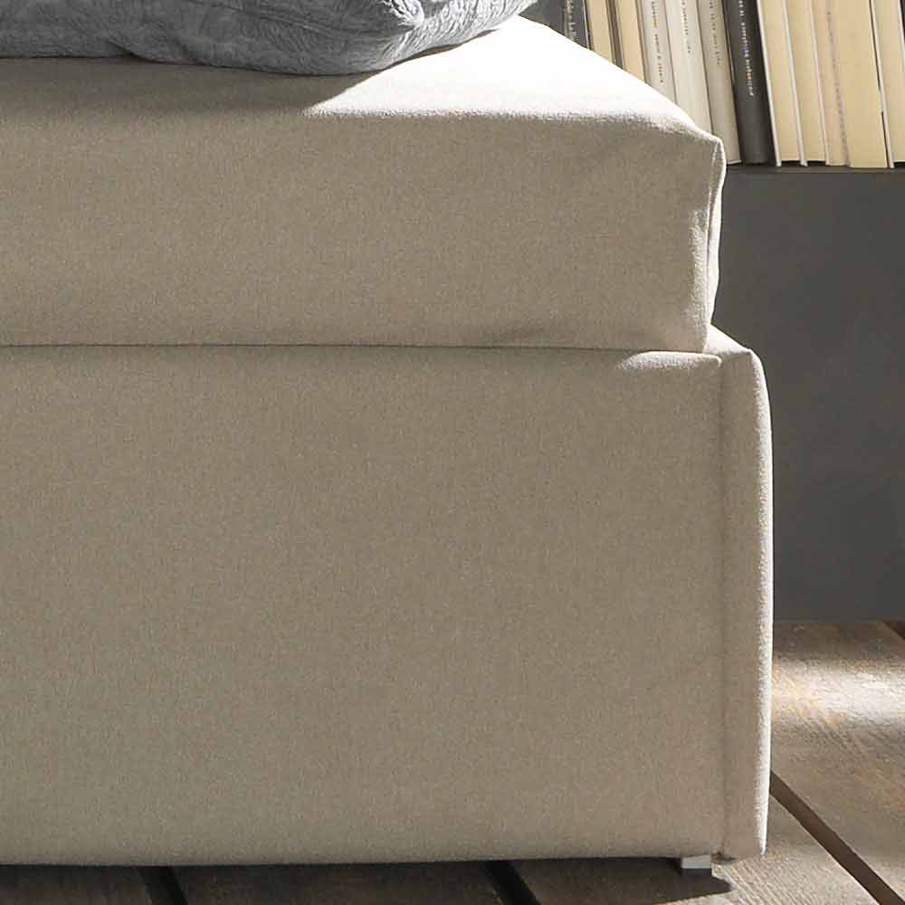 The Queue 8 single bed has an iron and raw wood fibre frame, covered in polyurethane foam without chlorofluorocarbons according to UNI standards and lined with light-stable velfodera. On this base, a 30 mm high metal frame painted with thermosetting epoxy powders is mounted, with a steam-bent beech slatted base.