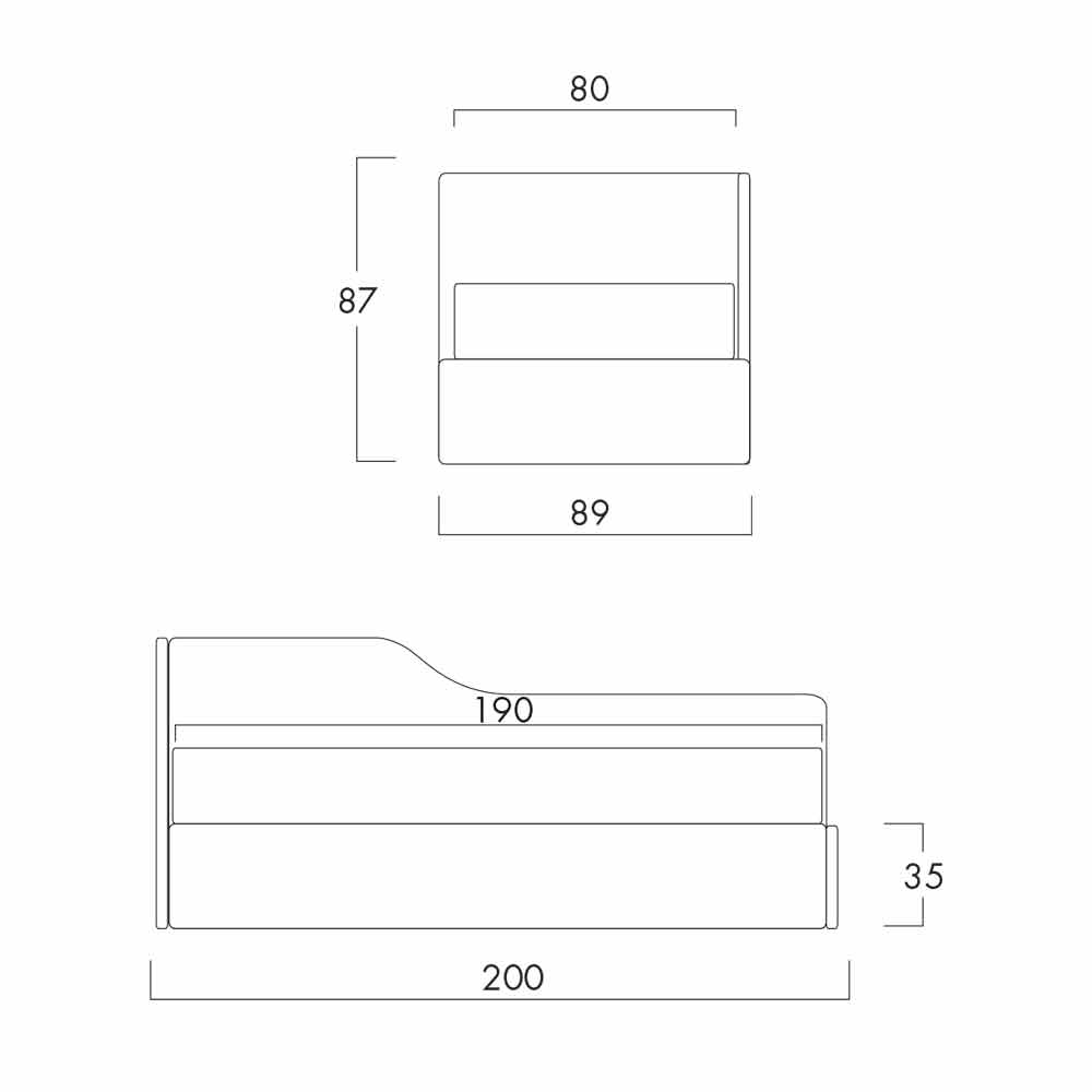 - 80x190 cm (finished dimensions L 91 x D 200 x H 87 cm)