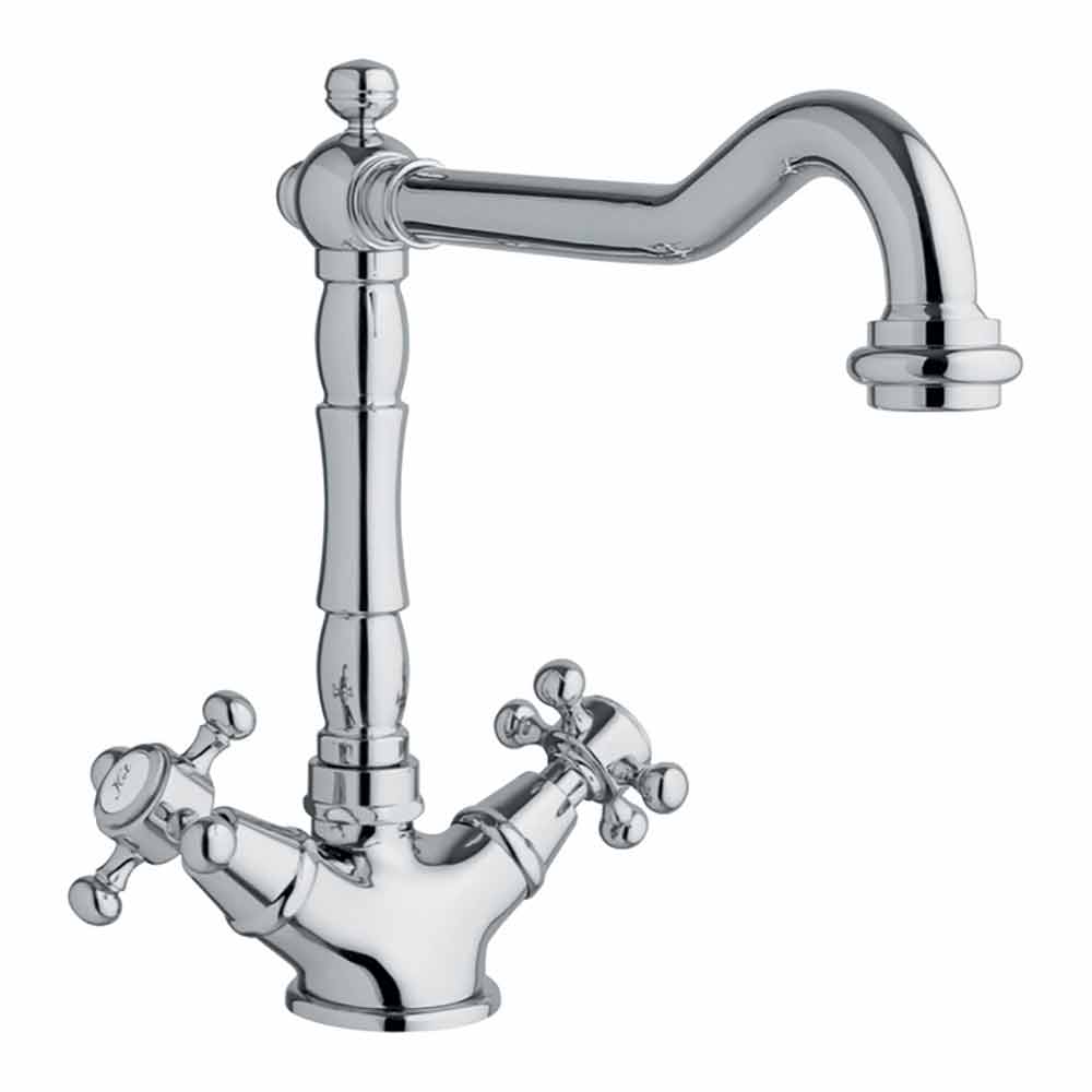 Single-hole mixer for kitchen sink in brass, classic design Made in Italy.