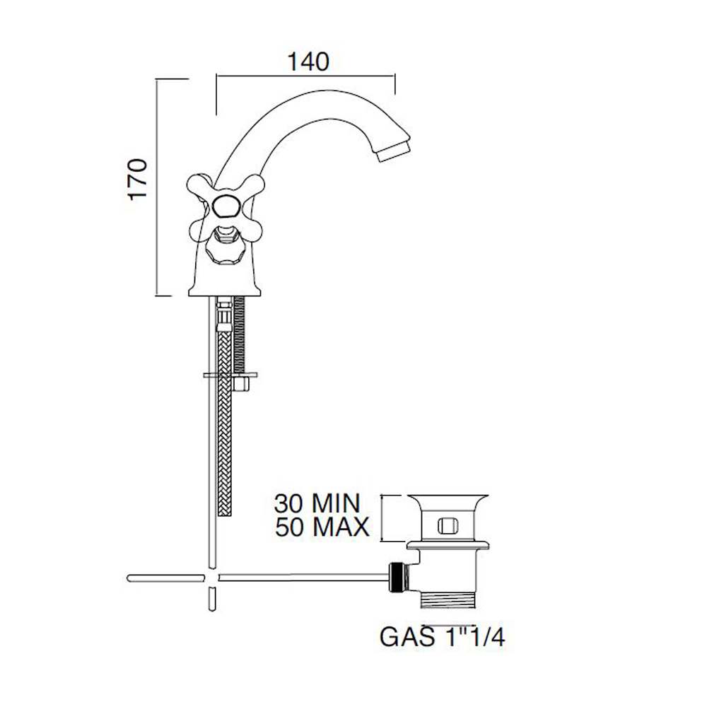 Single-hole washbasin tap with drain classic style made of brass, high quality made in Italy.