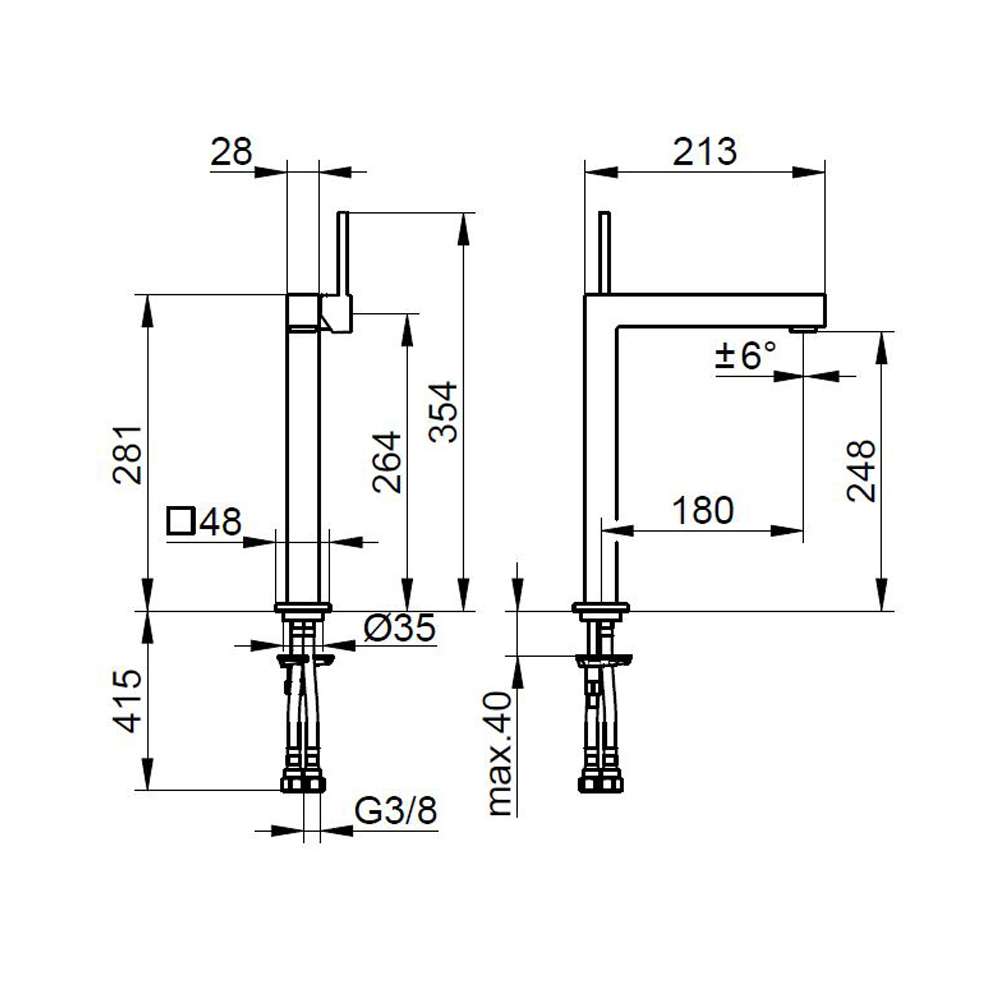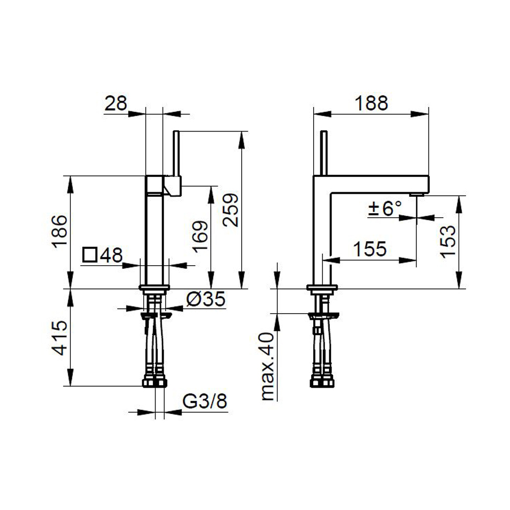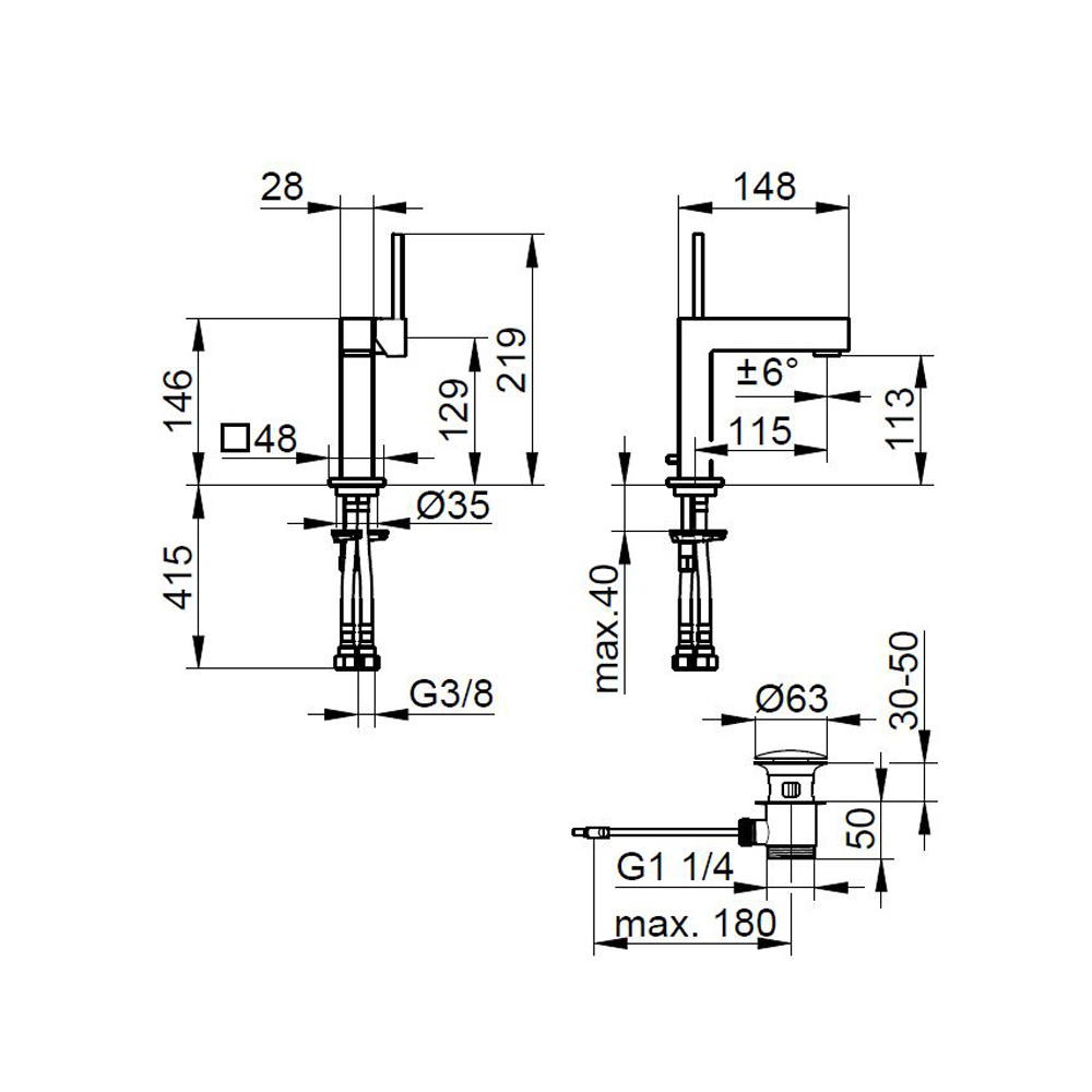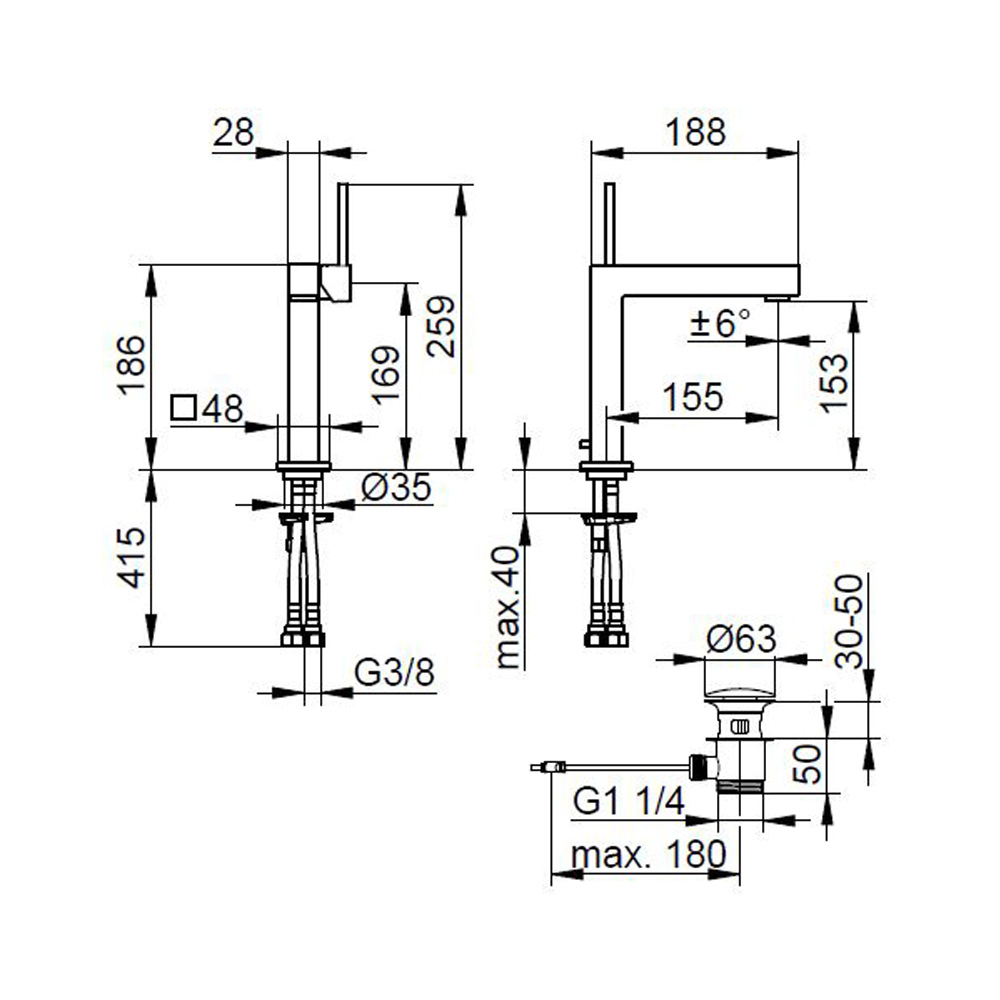 Square design single lever basin mixer 3 sizes.