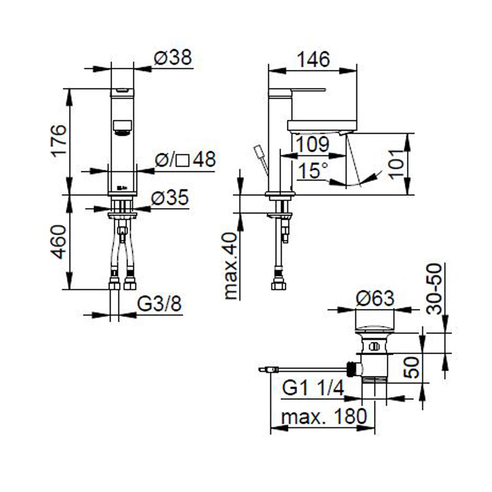 high quality materials. Technical features:- with or without 1 1/4 inch pop-up waste;