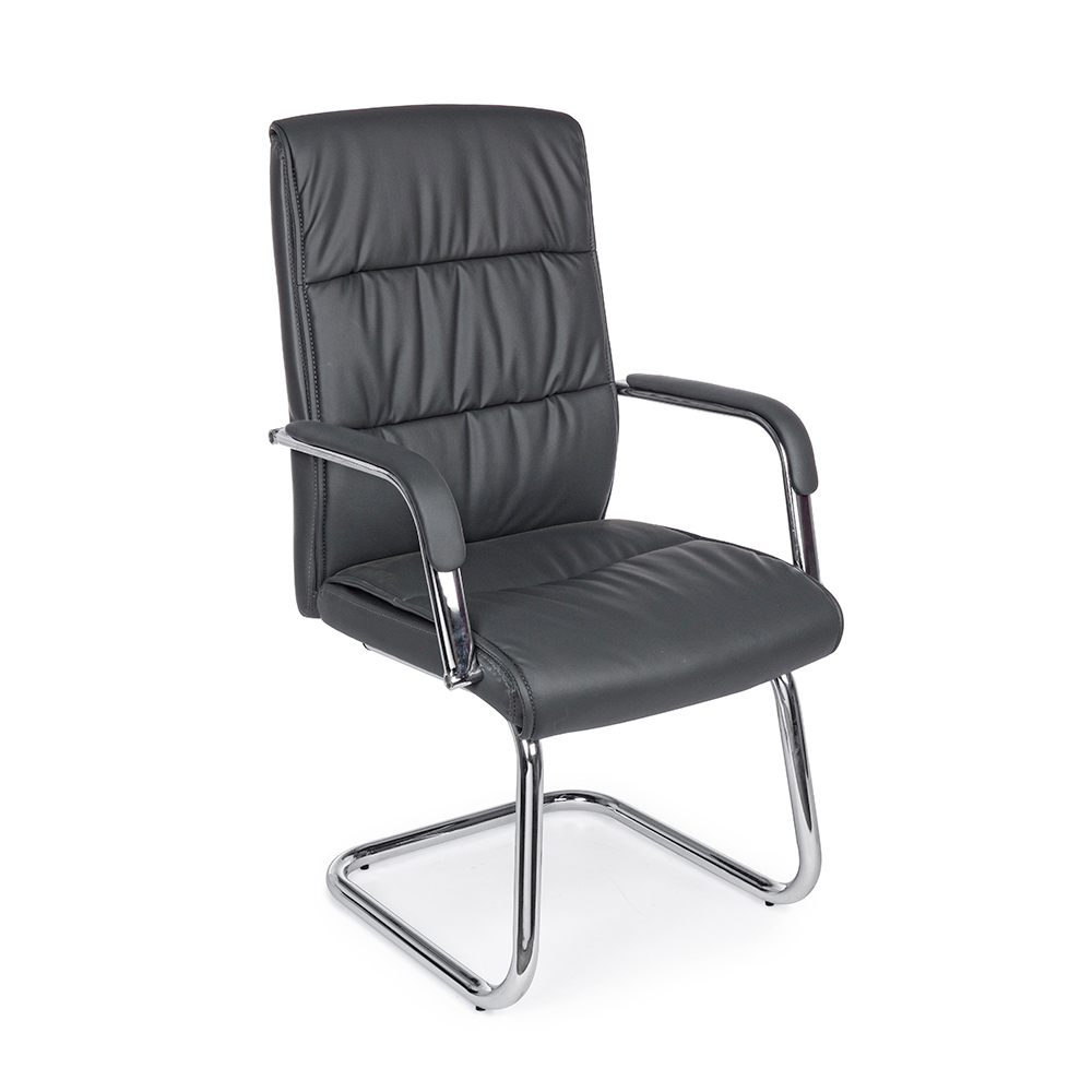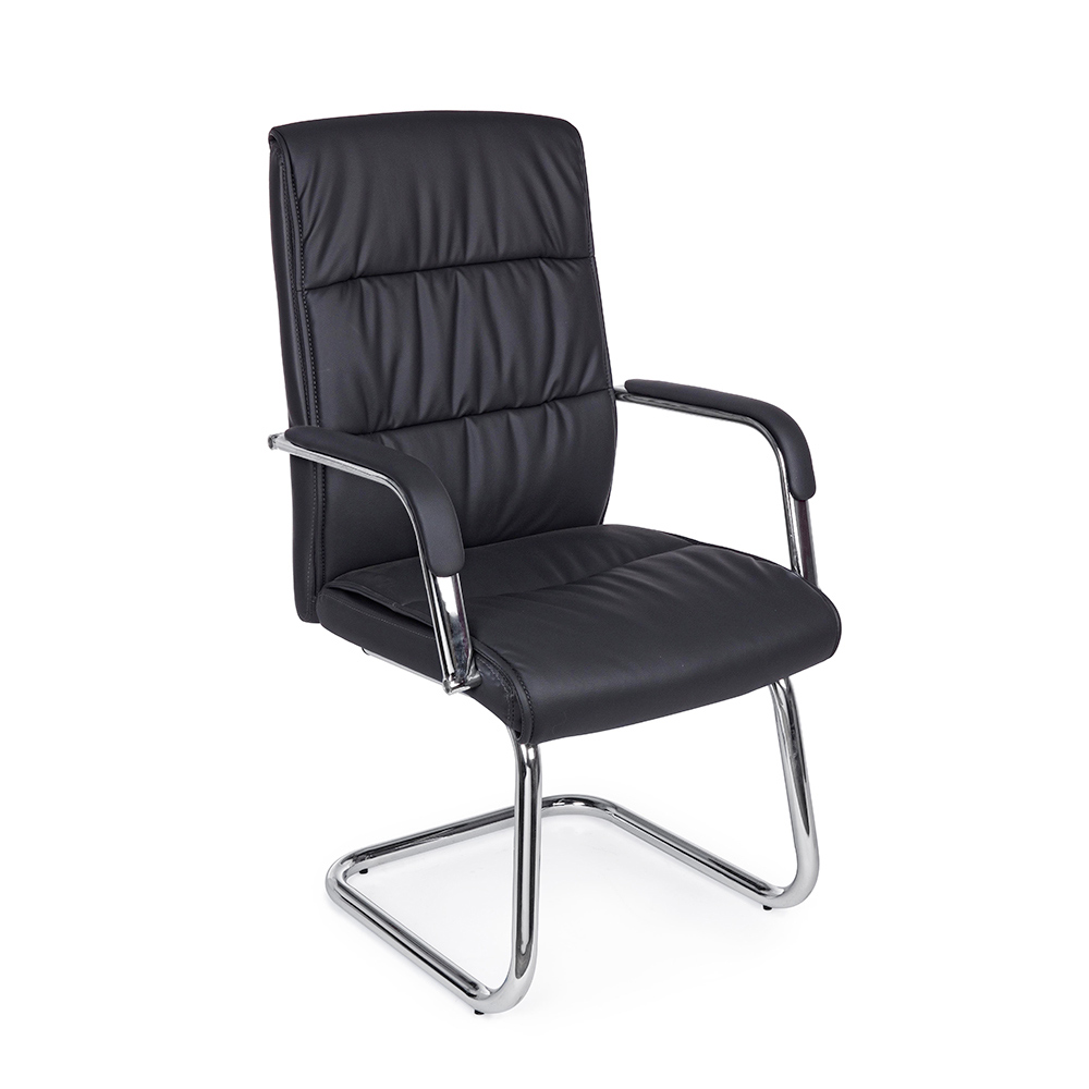Sled Office Chair Steel and Eco-leather with Armrests 2 Pcs - Monaldo