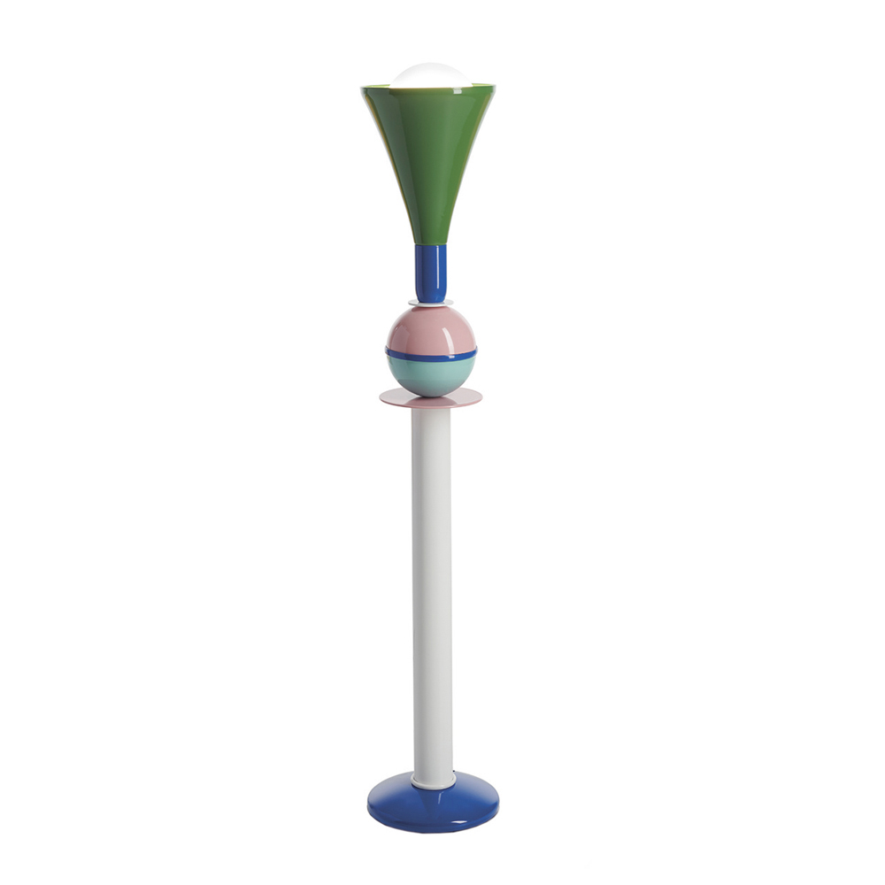 Produced in Italy by expert craftsmen who follow specific processing phases, it is made of colored aluminium and composed of thin shapes and soft colours. The lampshade directs the light upwards for a result of a soft and sinuous light. Possibility to choose two different measures: