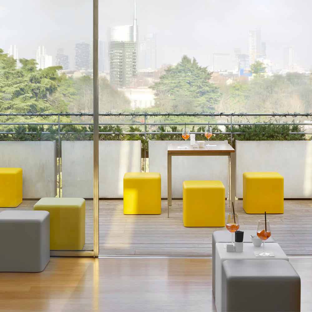Soft cube is a cube-shaped stool perfect for both indoor and outdoor settings. Thanks to its regular geometric shape and its irresistible made in Italy design, it furnishes your spaces with class and contemporaneity, making it perfect for both domestic settings and event locations.