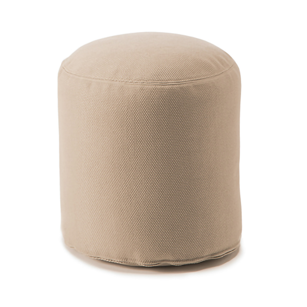 Round pouf for lounge in colored design fabric for interiors or exteriors, high quality made in Italy.