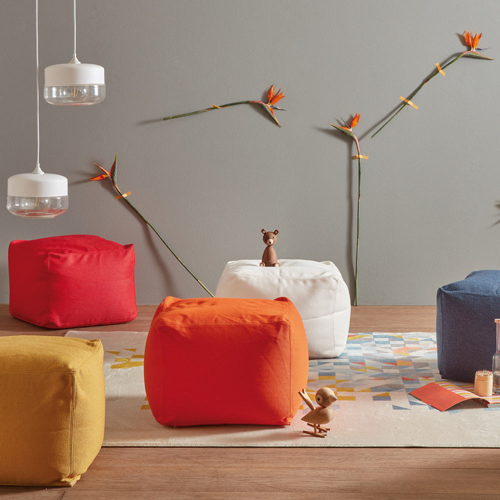 Soft ottoman square pouf for indoor or outdoor, high quality made in Italy.