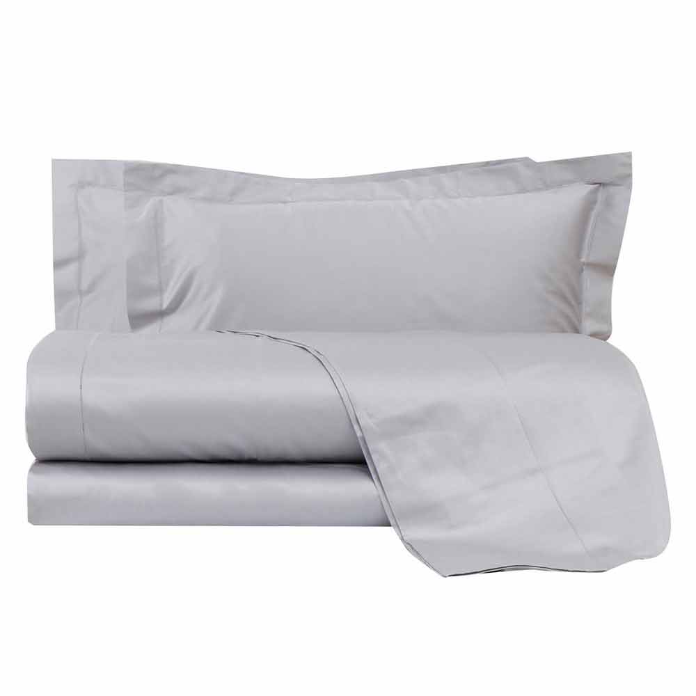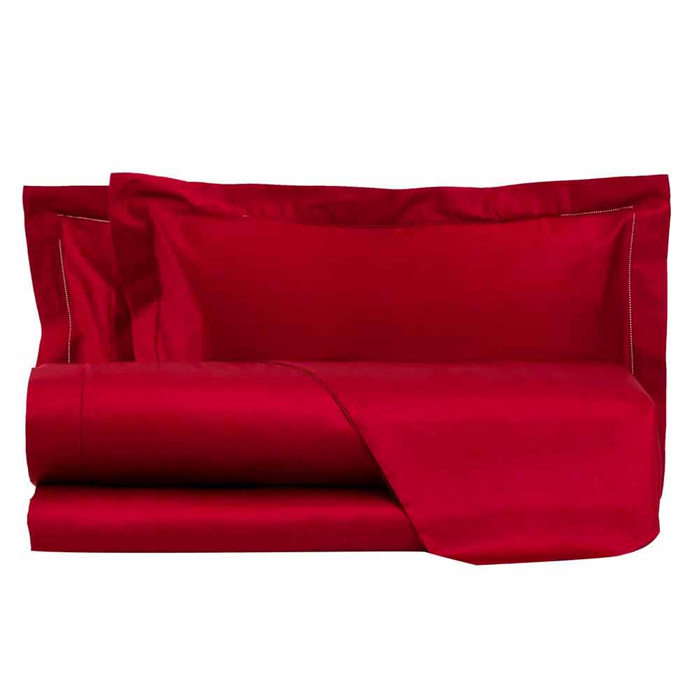 Complete with plain sheets of different colours for design double bed in satin 300 TC made in Italy.
