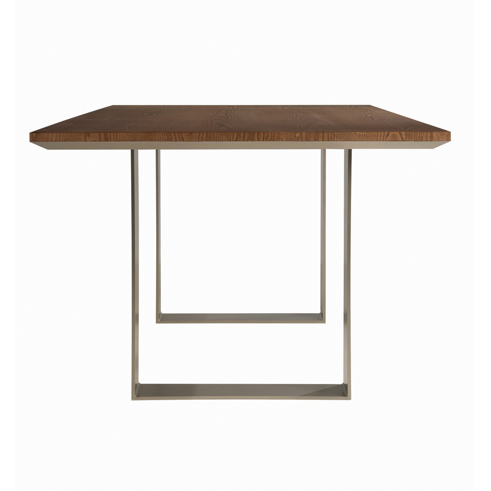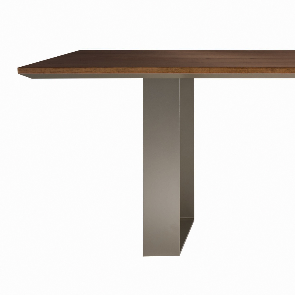 Dining table made in Italy consisting of two iron legs and solid blockboard wood top with MDF support. A complement with a minimal but incredibly modern style, designed to furnish any living space in an essential way. Its aesthetic is particularly simple, marked by minimal shapes, a rectangular top resting on two legs with a particular workmanship that transmit a dynamic and elegant visual effect.