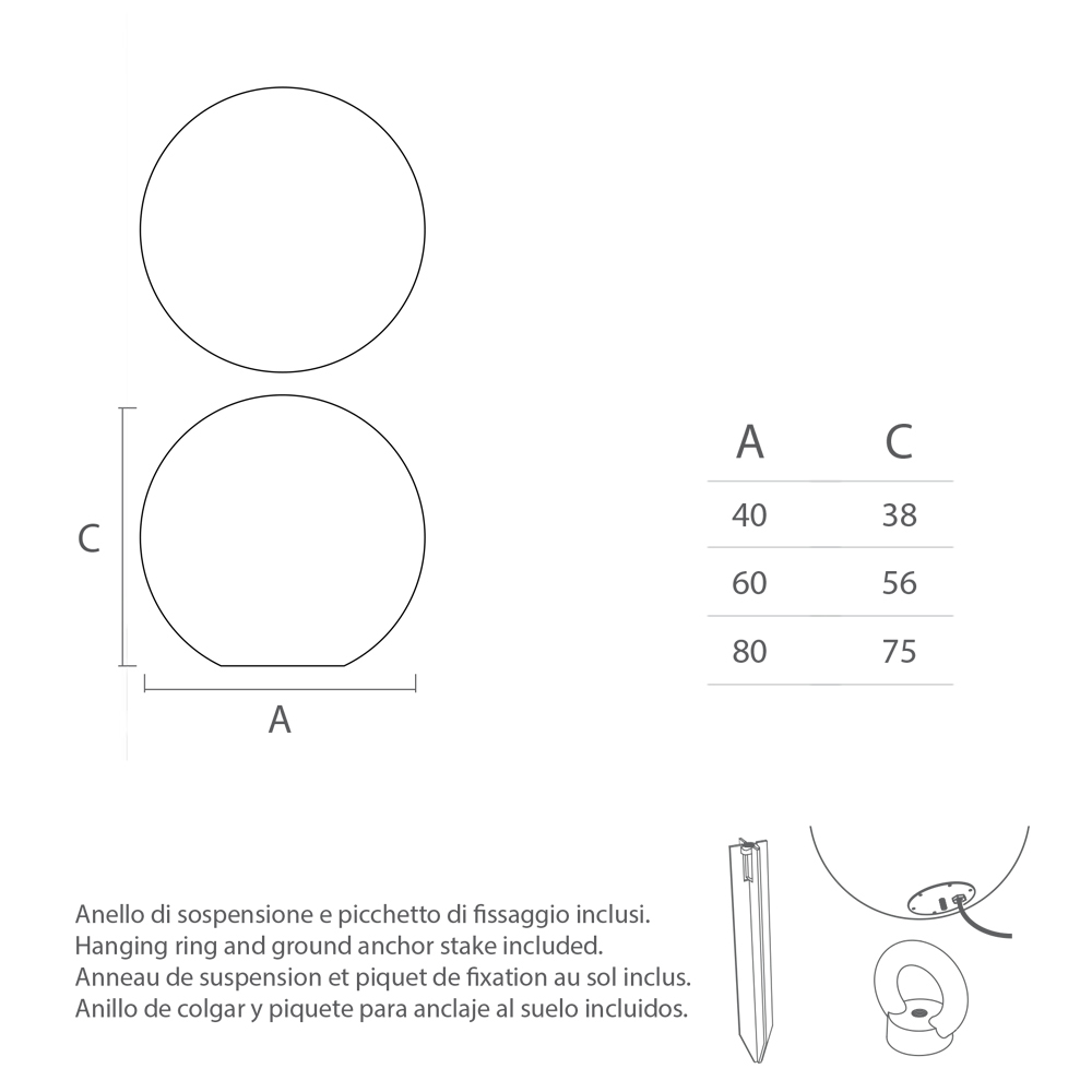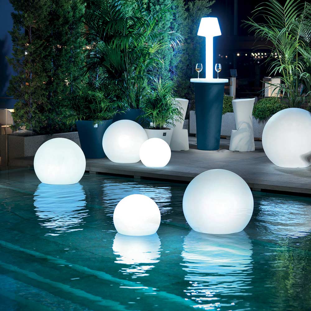 This outdoor lamp is made entirely in Italy in polyethylene , a high quality material that makes this product highly stable and resistant to atmospheric agents, perfect for positioning in various outdoor spaces. A furnishing accessory with a spherical shape available in various sizes that will capture your imaginative mind, allowing you to play with the most varied and personalized combinations.