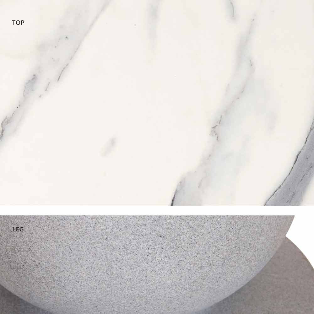 top is made of HPL. Available colours:- arabesque base and wooden / slate / cement / calacatta top;