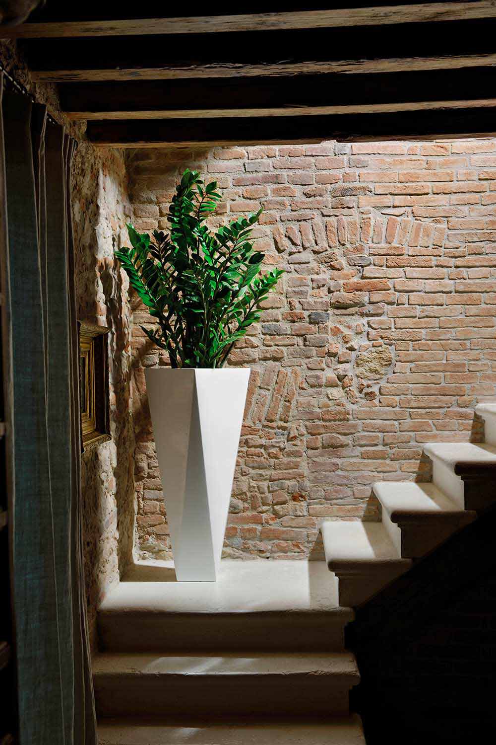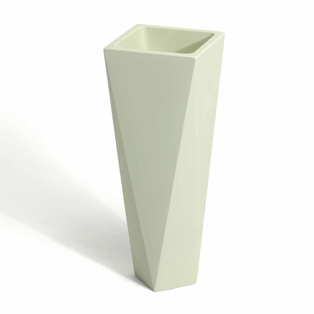 polyethylene available in the opaque version characterized by excellent resistance to the sun, shocks and heat, in the resistant and bright lacquered version that allows you to create plays of light and reflections that they become protagonists within the environment or, finally, in the metallic version. Ideal for medium / small-sized plants, this vase is available in two different sizes to satisfy every type of need and to better adapt to different furnishing situations.