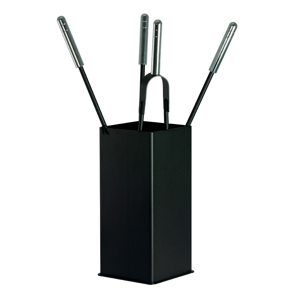 This metal fireplace tool holder represents an elegant solution for keeping the essential tools for managing your fireplace in order . Its simple and clean rectangular shape is made of sturdy metal that discreetly adapts to any type of interior, adding a touch of minimalist style.