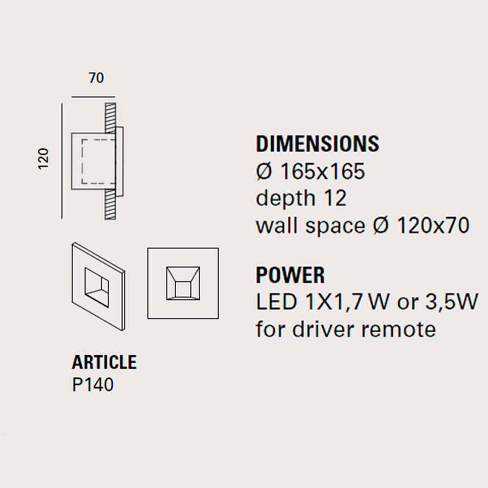 - lumen 140 1 x 1,7W, IP 65, 4100K angle 45 °;