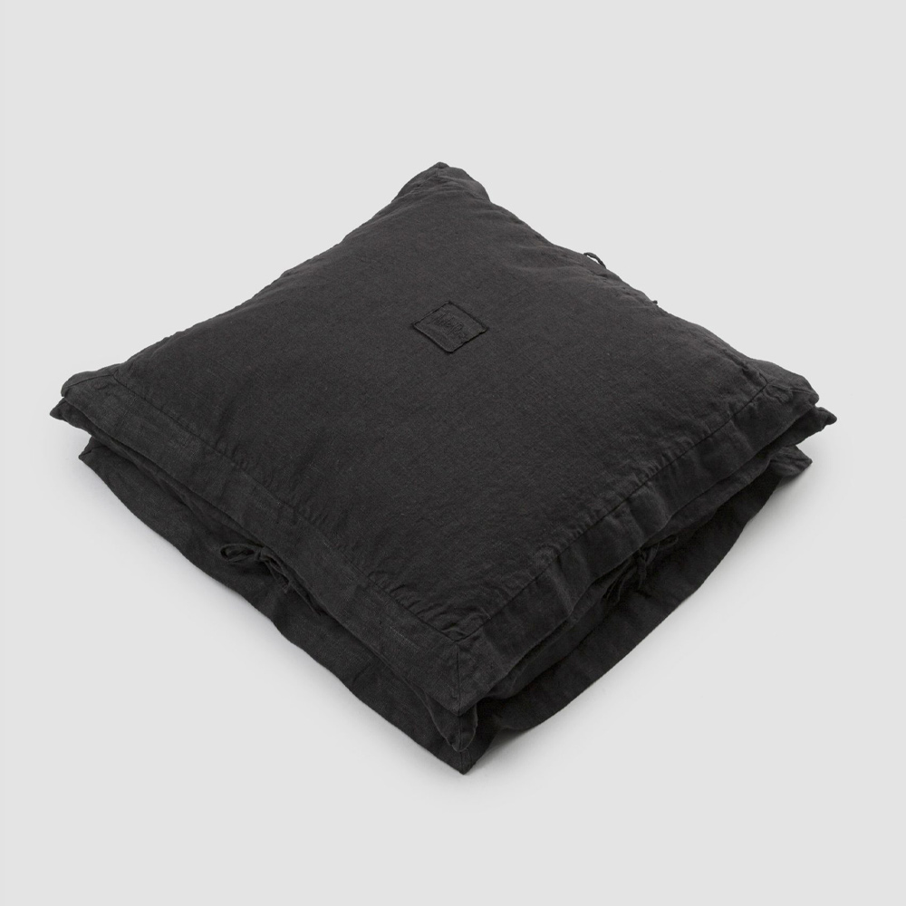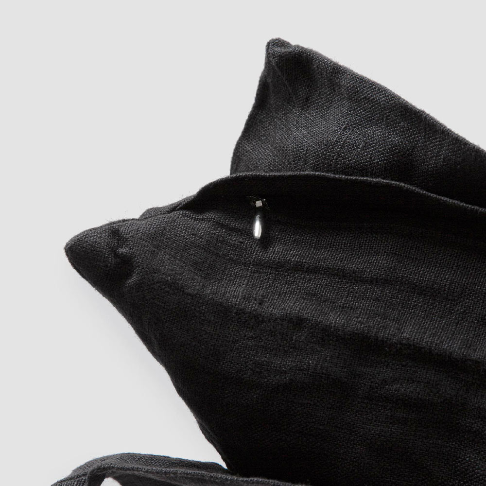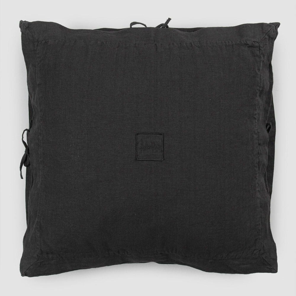 The value of tradition joins the modern lifestyle with this black heavy linen pillowcase with square decoration and ties on the sides.