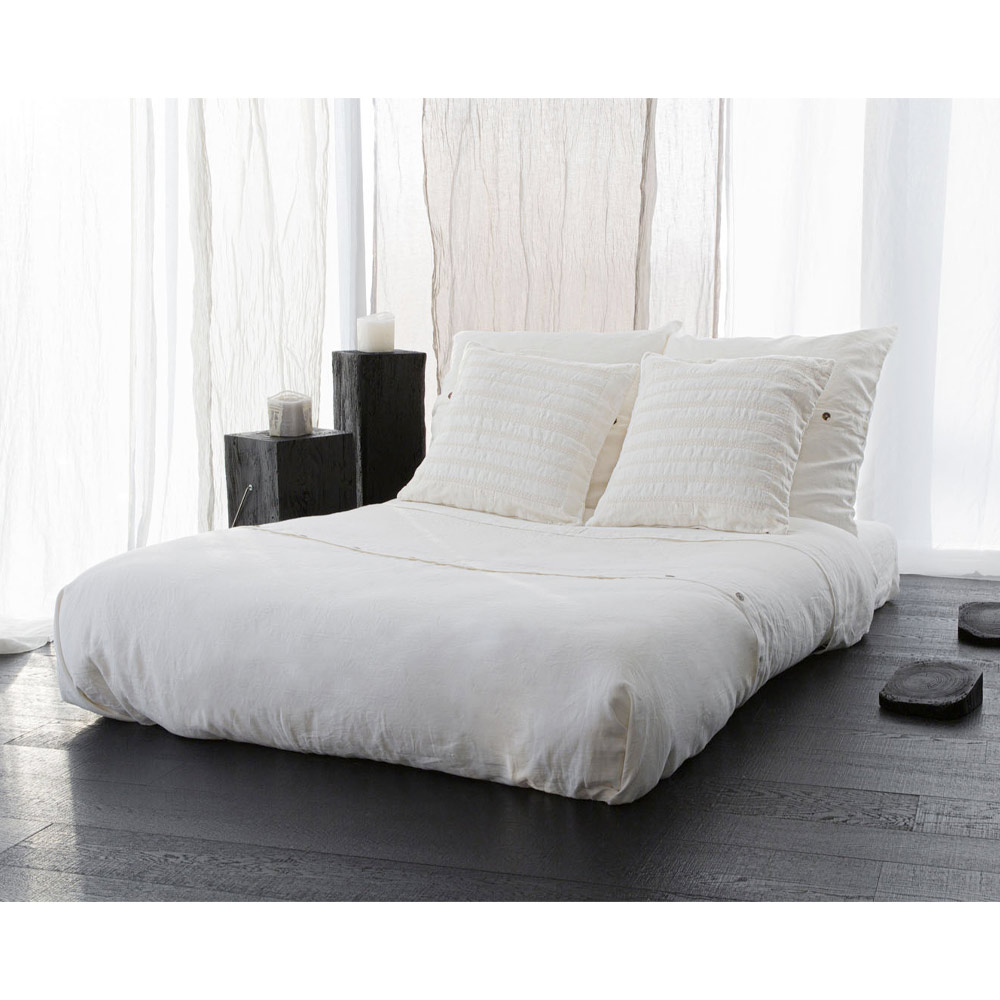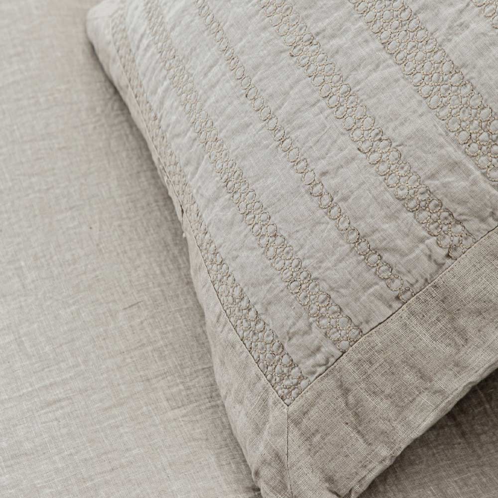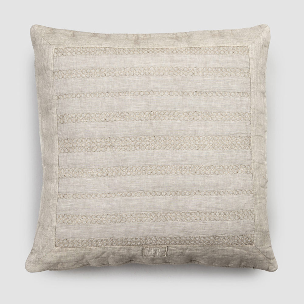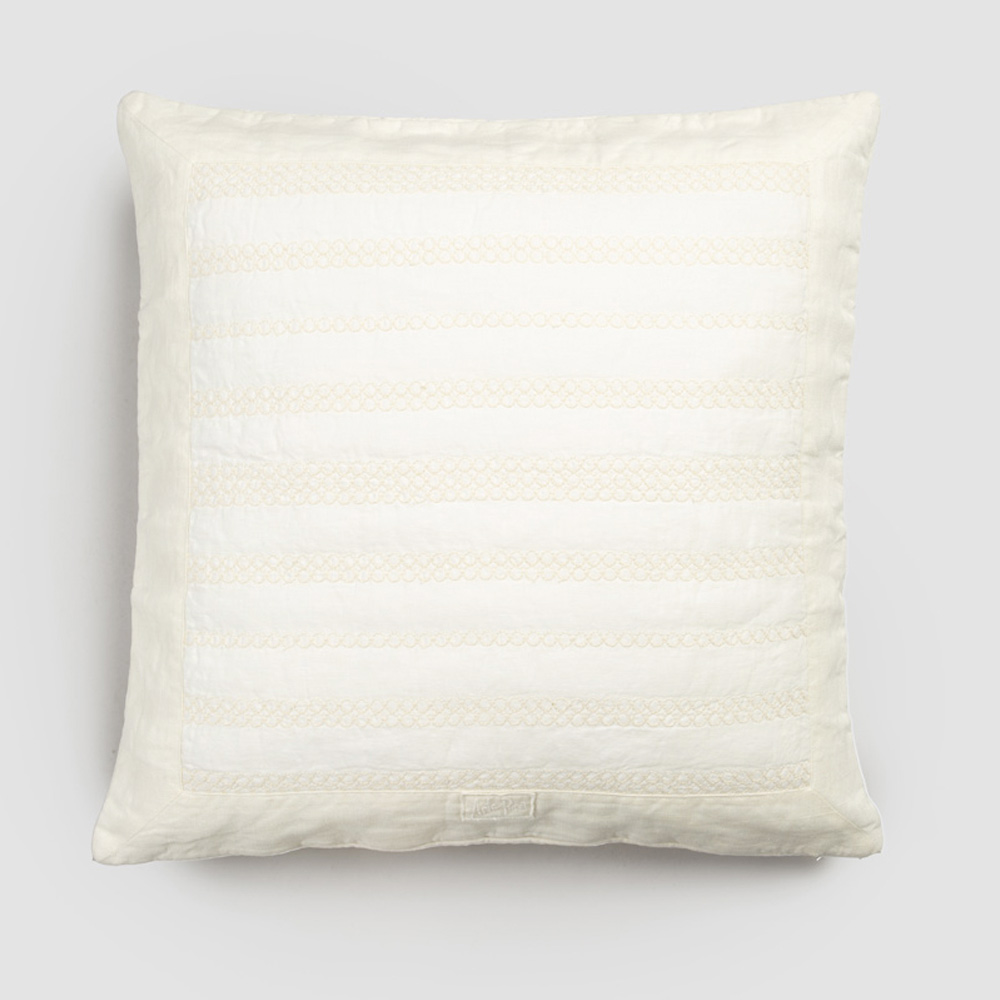 Square pillow case in linen with embroidery in 2 finishes and made in Italy.