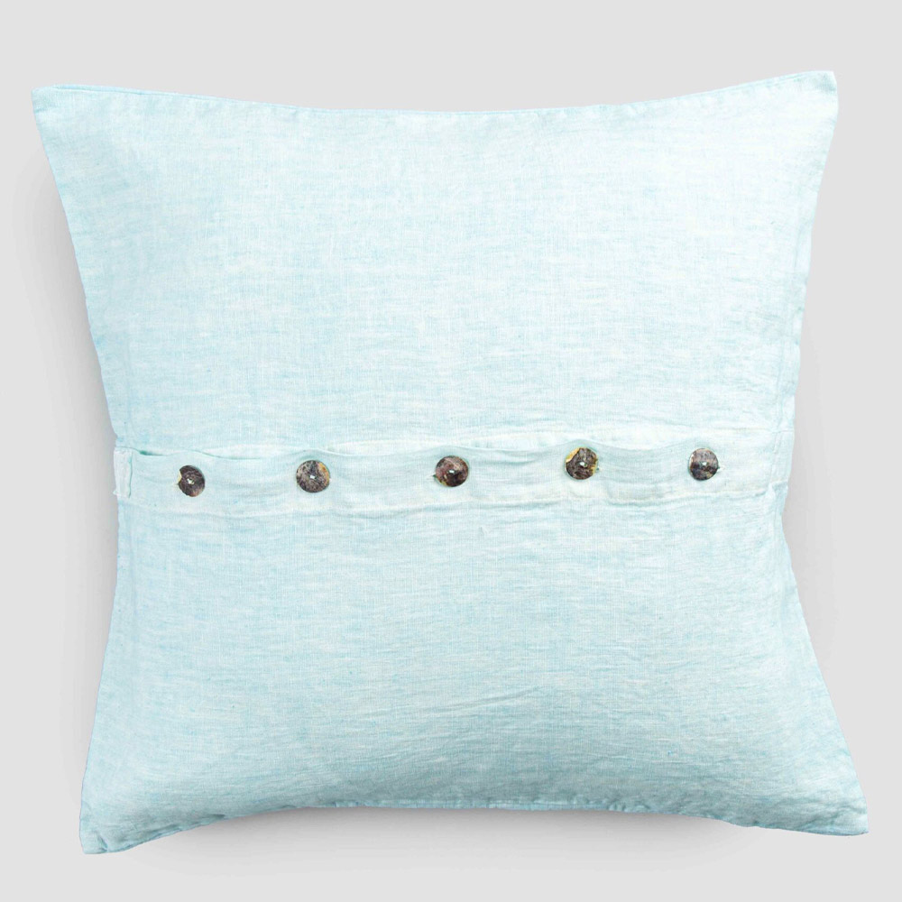 Linen pillowcase with central closure with mother-of-pearl buttons, 2 luxury finishes made in Italy.