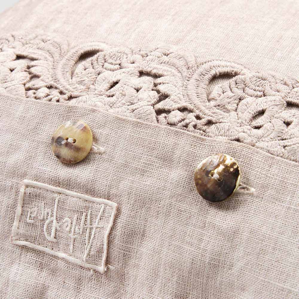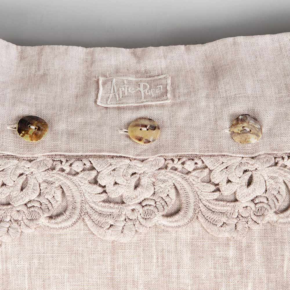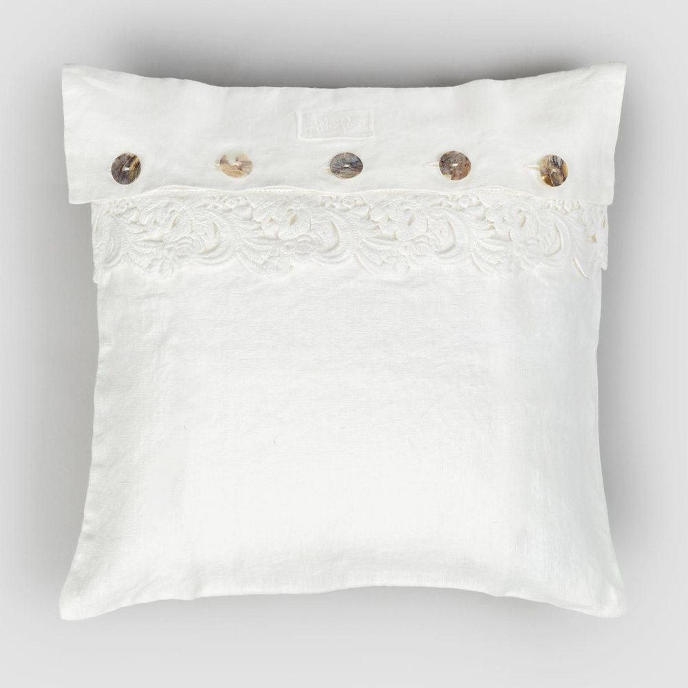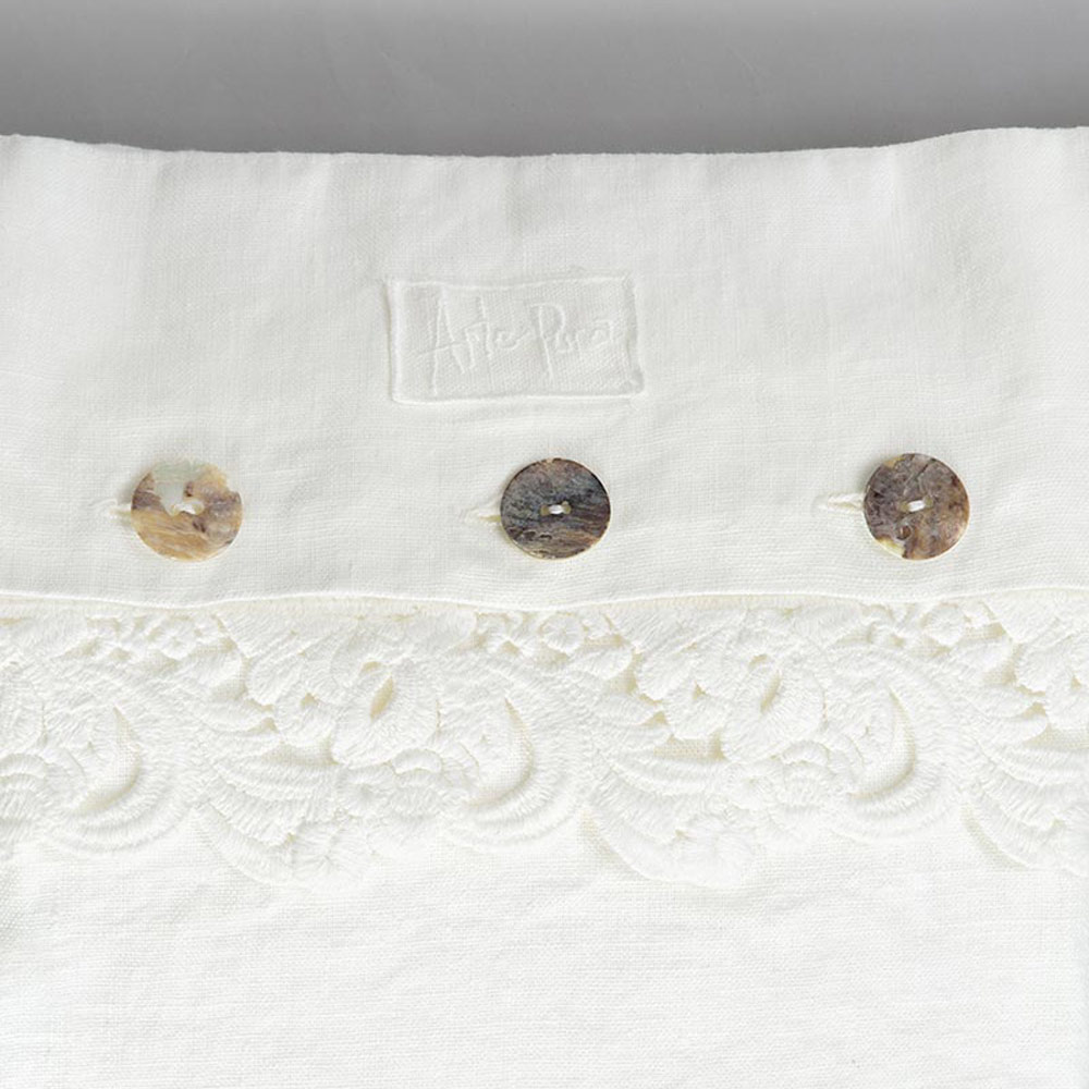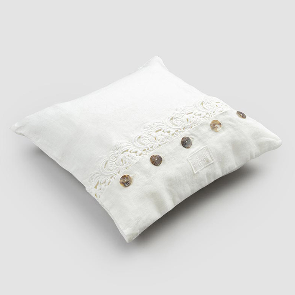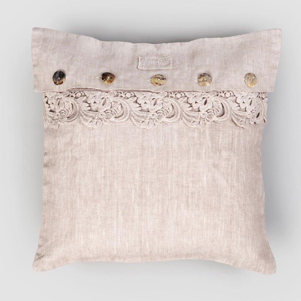 Square pillowcase in pure linen with harmony lace and buttons with flap, 2 colours made in Italy.