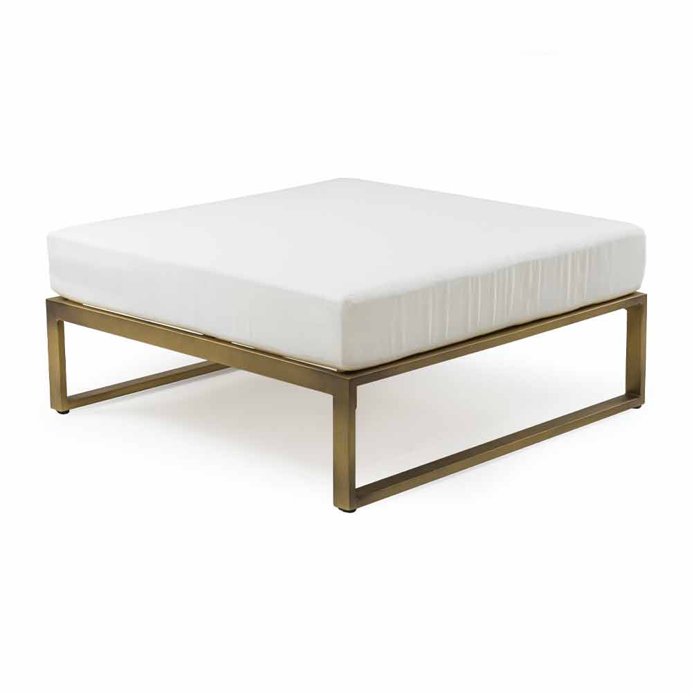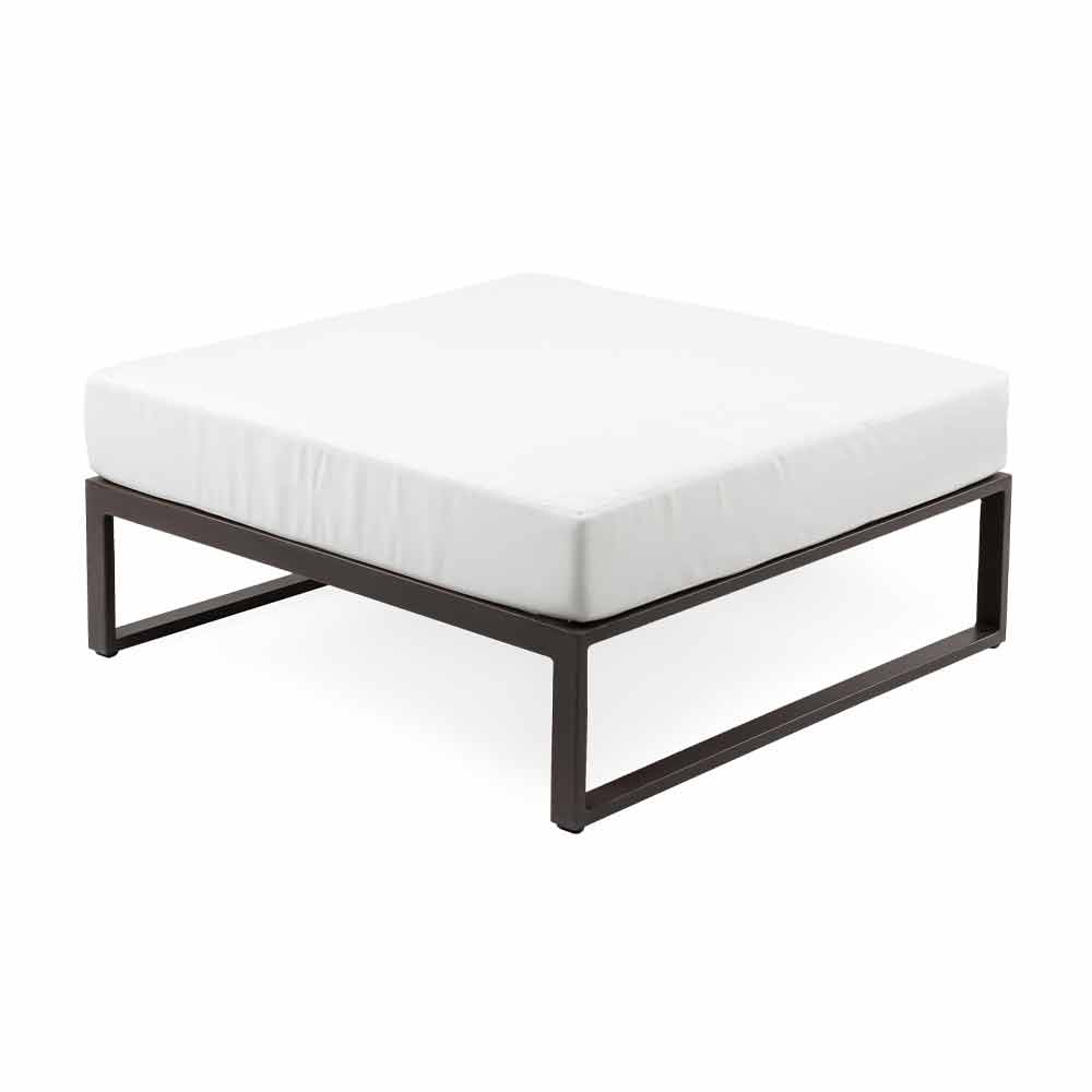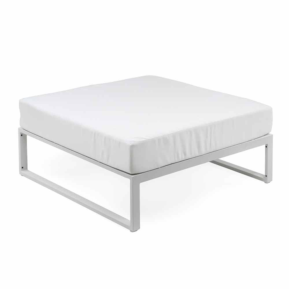 Square pouf for the outdoor lounge with aluminium structure in 3 finishes and white fabric cushion, luxury design.