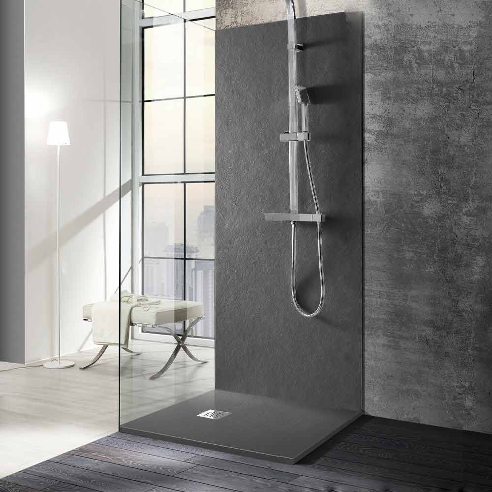 Modern square shower tray 80x80 in stone and steel effect resin.