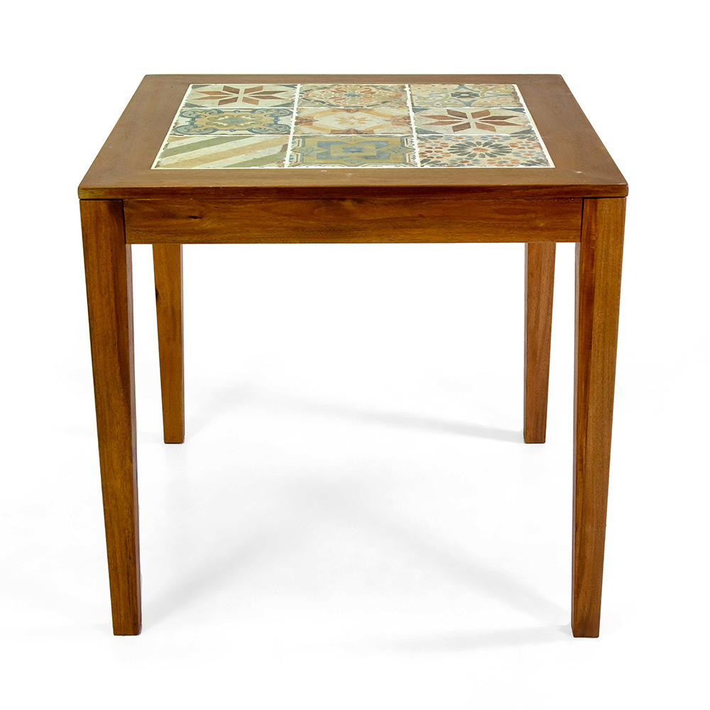 Discover the dining table that combines rustic elegance and traditional art in one exclusive piece of furniture. This beautiful table features a decorated ceramic top, harmoniously set in a solid wooden structure . Each tile is carefully selected to create a mosaic that evokes artisan traditions, making it a unique and fascinating piece.