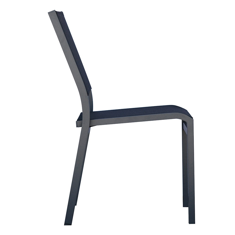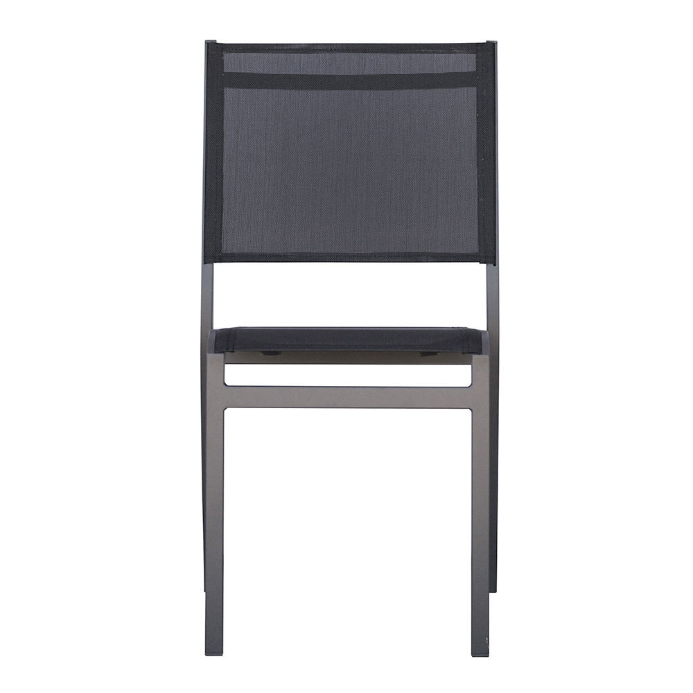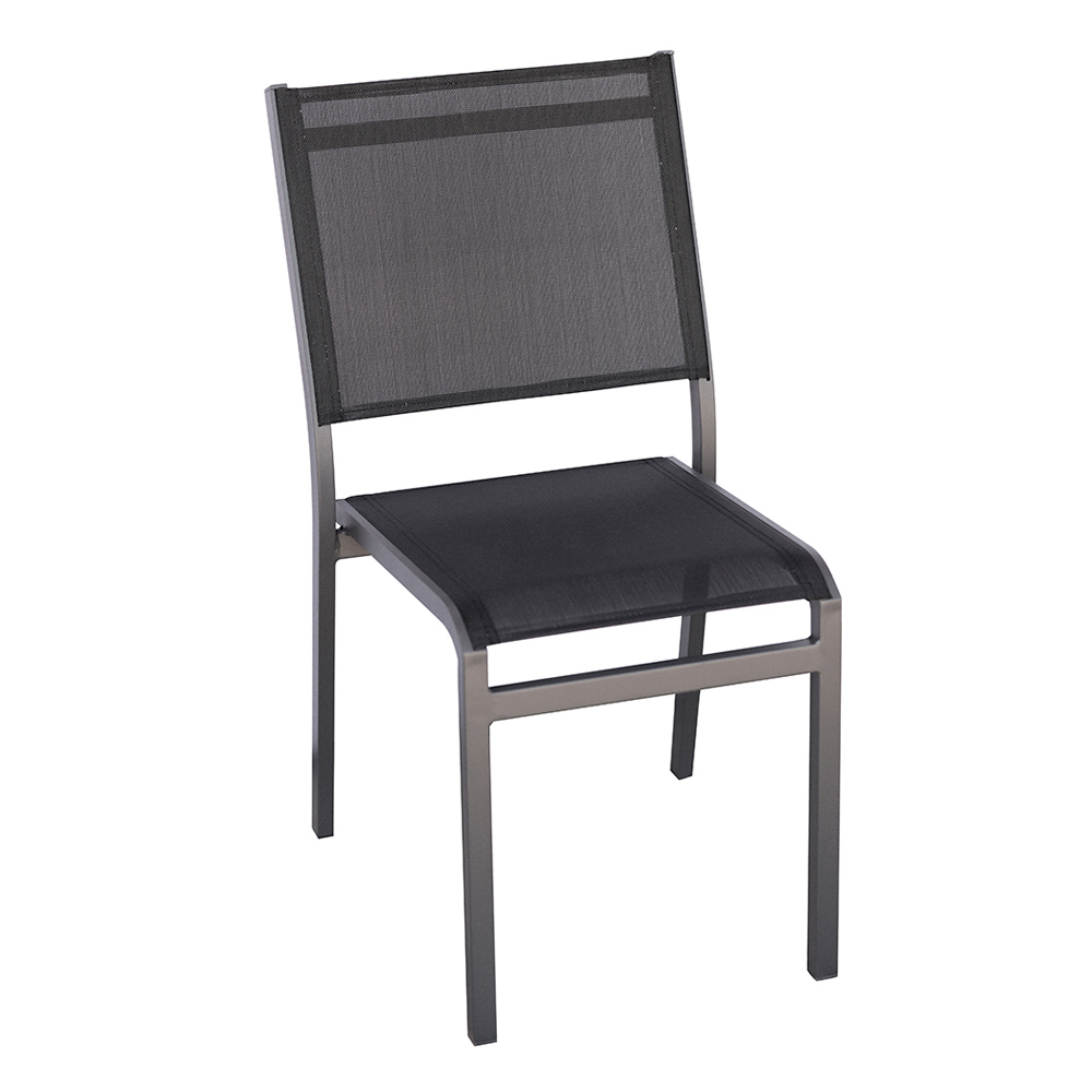 SimplicityĆ and sophistication meet in this aluminum and textilene chair, perfect for furnishing any outdoor space with style. The aluminum frame ensures lightness, strength and durability, while the textilene seat and back offer ergonomic comfort and high breathability, ideal for summer.
