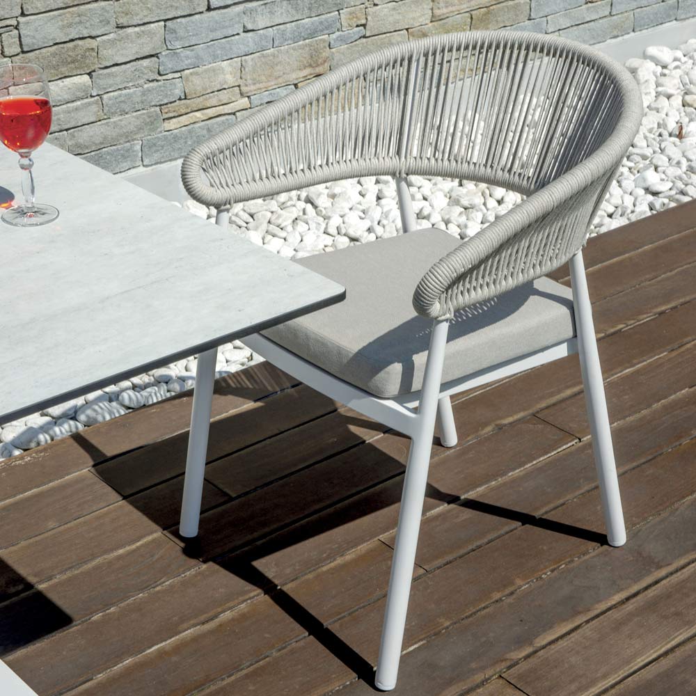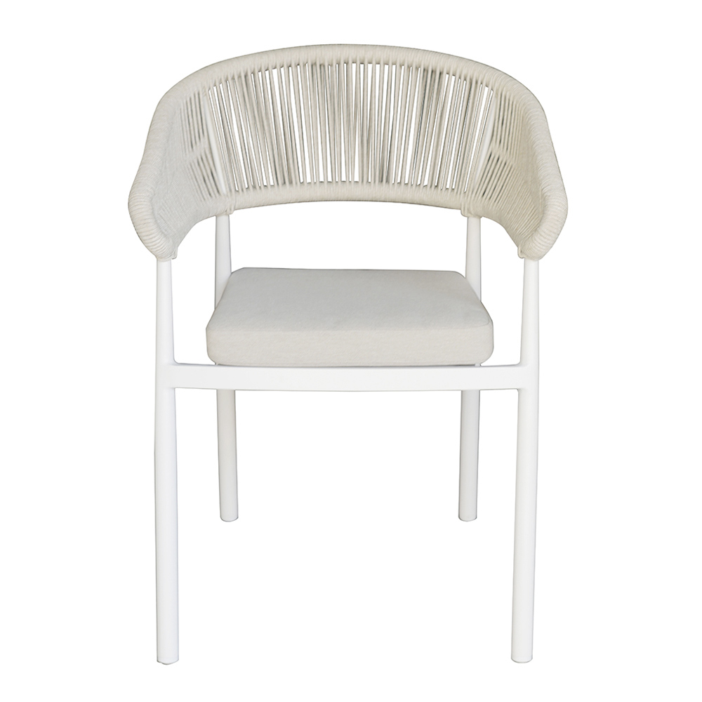 Give a touch of sophisticated style and practicality to your outdoor environments with this modern design chair. The rope back adds an element of handcrafted elegance, while the aluminum slatted seat provides strength and comfort, making it ideal for everyday use.