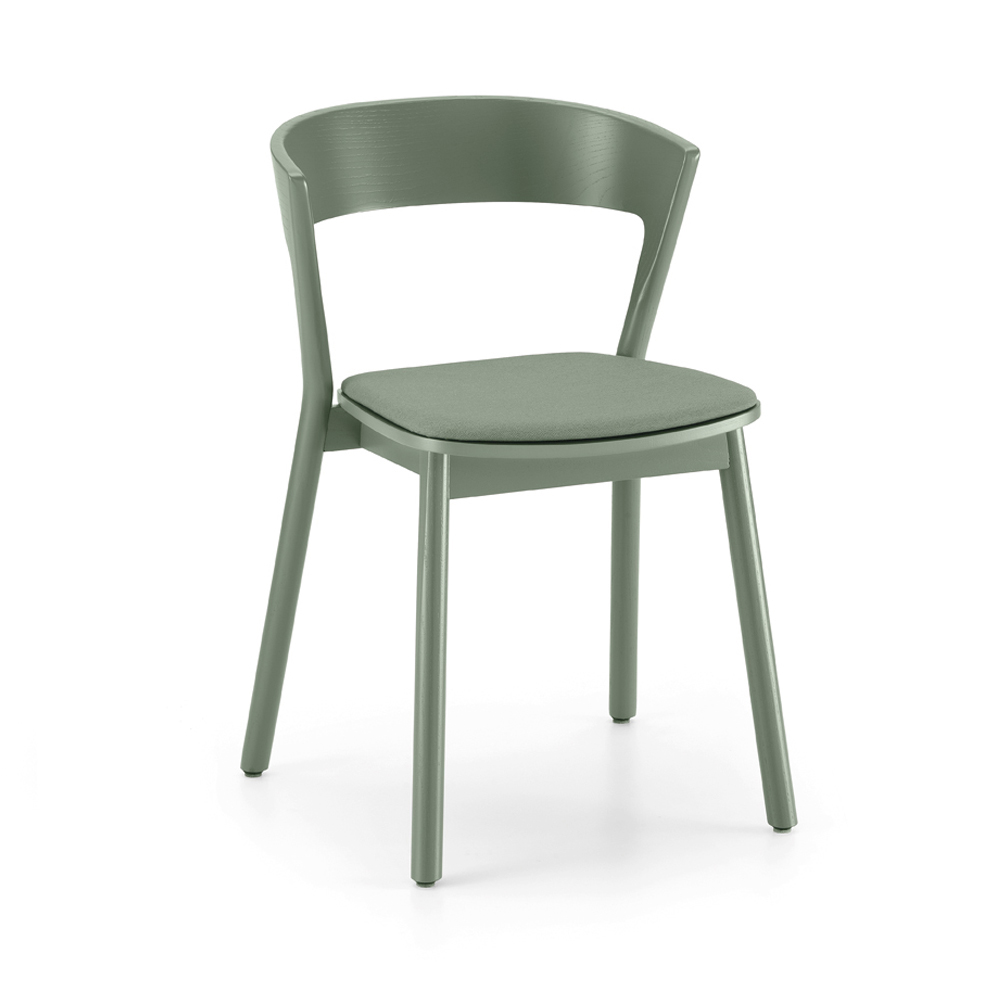 Chair for dining room or kitchen made in Italy with structure in ash wood and seat in plywood padded and covered in fabric . Its design is inspired by the Scandinavian style , thus basing the entire structure on concepts of simplicity and minimalism . What is born is therefore a comfortable and welcoming seat capable of adapting to any furnishing situation thanks to its extreme versatility and Ā to the wide range of colours and finishes available that make it possible to create combinations capable of satisfying every need and need, from the most sober to the most extravagant. Its shape also allows you to stack the chairs, thus maximizing the functional side and allowing you to optimise space when necessary in an easy and fast way.