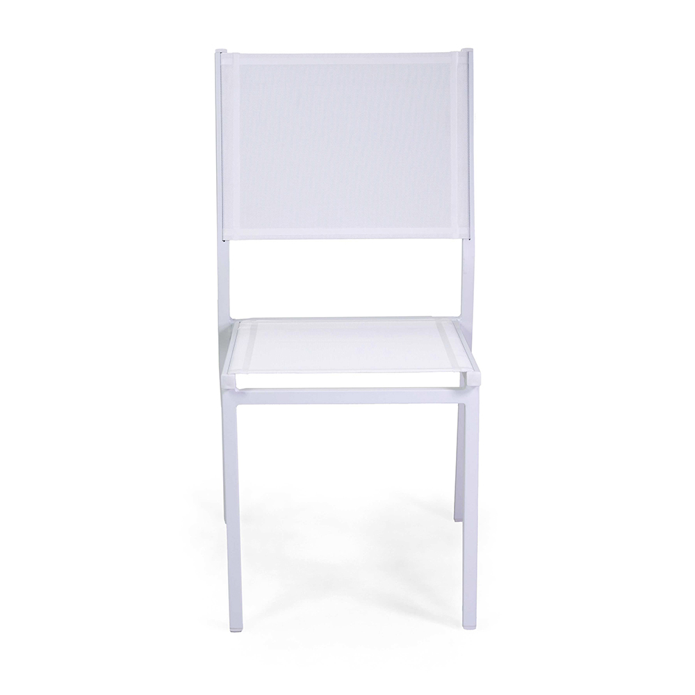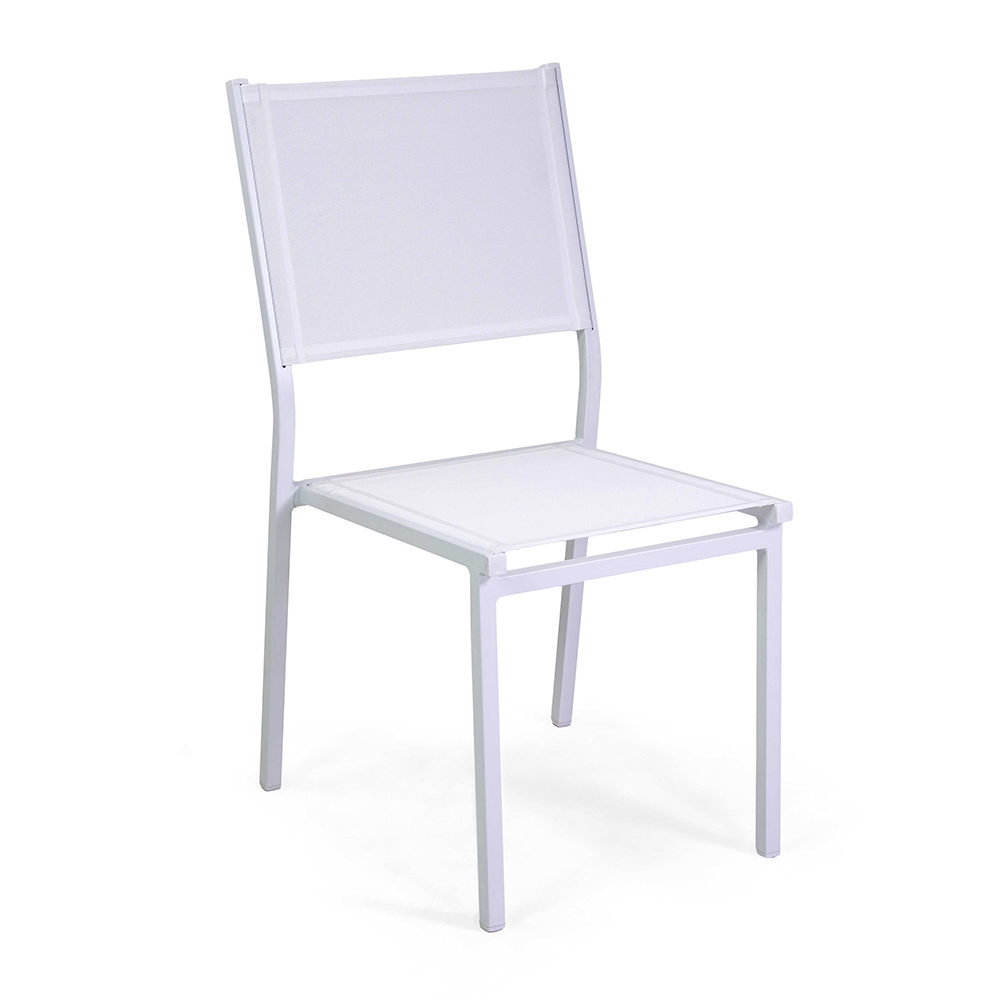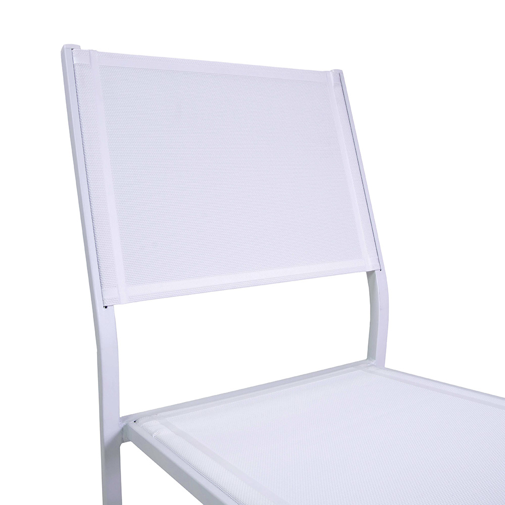 This chair with a white powder-coated aluminium frame represents the ideal balance between functionality and style, perfect for outdoor environments such as gardens and terraces. The white textilene not only gives it a modern and elegant look, but also ensures a comfortable and weather-resistant seat.