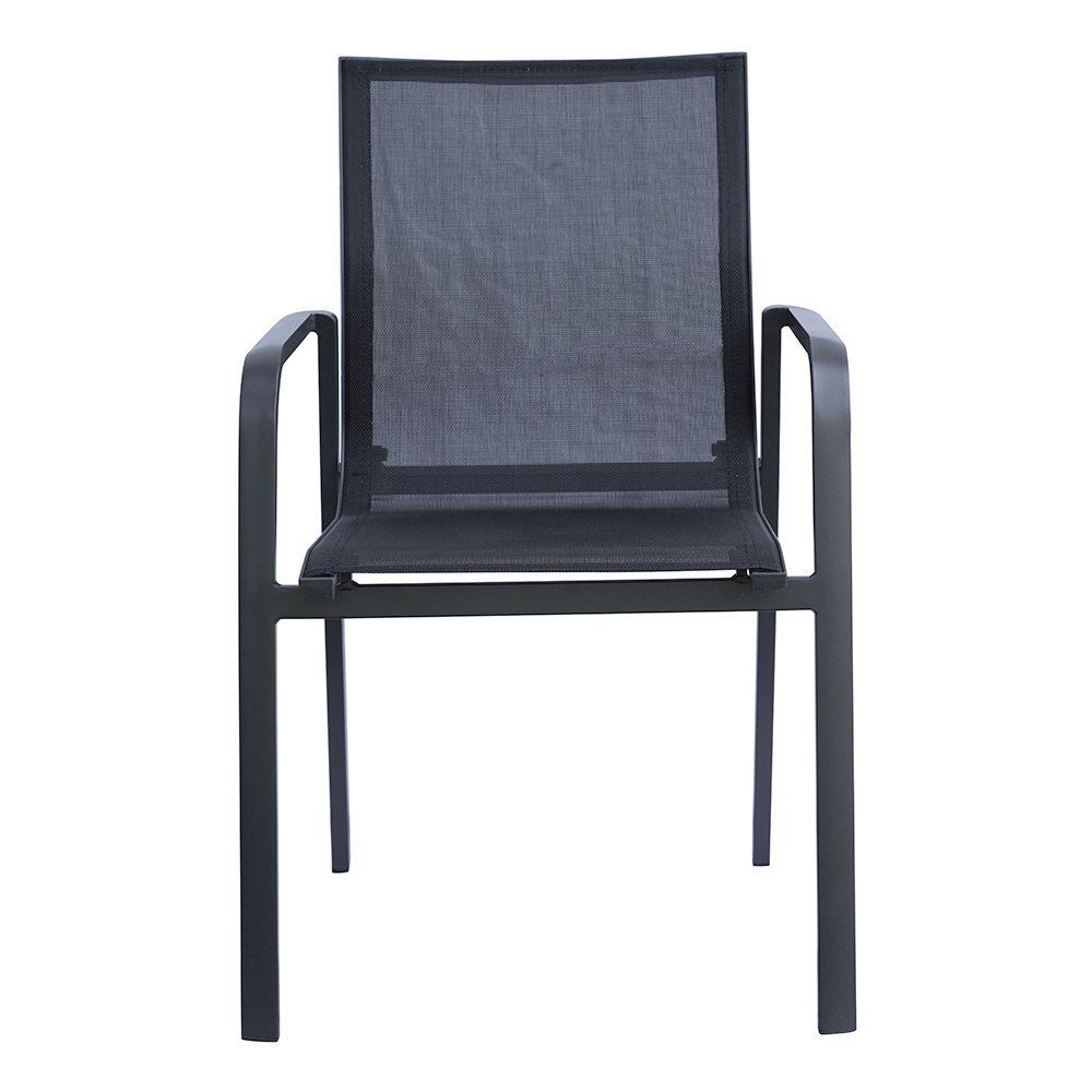 The textilene seat and back ensure a comfortable experience due to their breathability and ease of cleaning. In addition, the stackable feature allows for space optimization, making this chair practical and versatile.