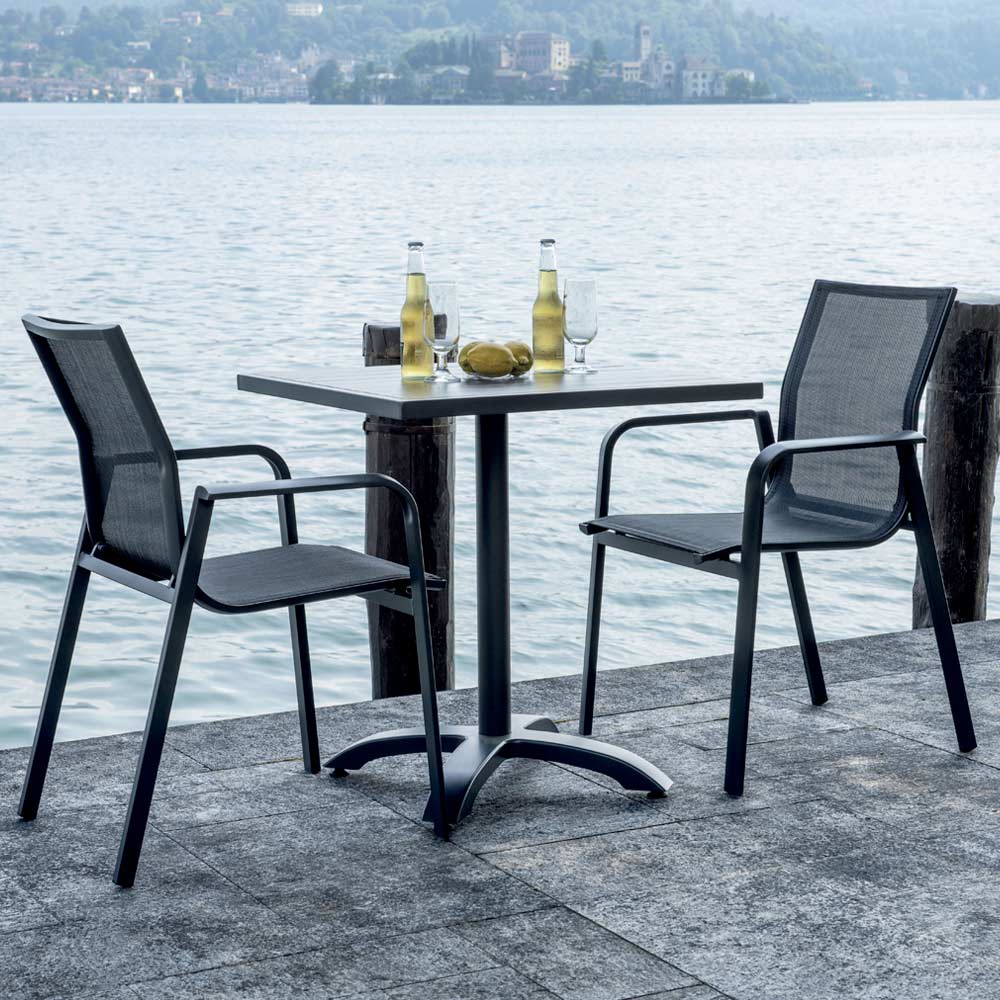 Combine modern style and functionality with this aluminum and textilene chair, designed to provide comfort and durability in any outdoor environment. The lightweight yet sturdy aluminum structure ensures durability and impeccable weather resistance, making it ideal for terraces, gardens or contract spaces.