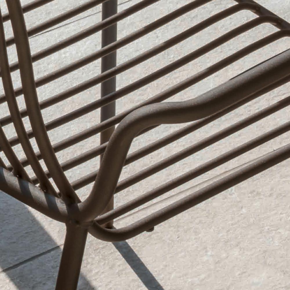 embossed painted metal . Its essential aesthetics is characterized by the particular wire weave that follows the ergonomic shapes of the structure in a harmonious and sinuous way, adapting better to the silhouette of the body in order to offer a
