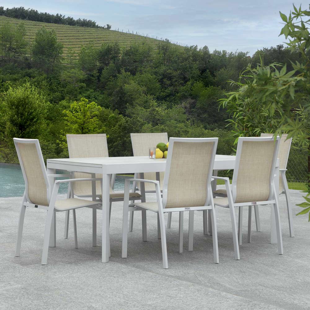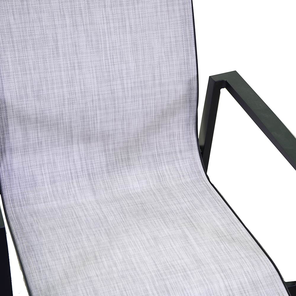 The aluminum frame was chosen for its durability and weather resistance, ensuring that the chair will maintain its impeccable appearance season after season. The textilene upholstery adds a touch of elegance, as well as being incredibly easy to maintain and clean.