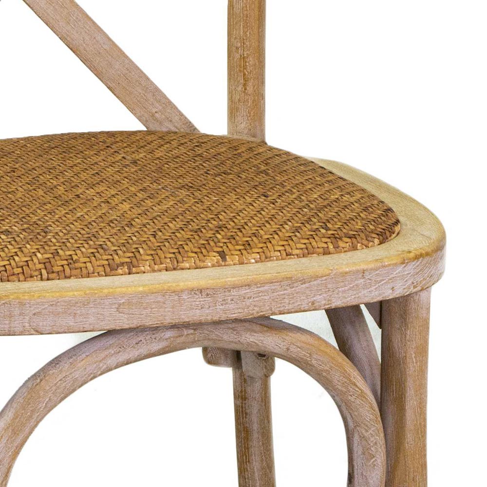 The cross -shaped backrest with sinuous queues and the contoured seat guarantee maximum comfort during use, making it an ideal choice for dining rooms , kitchens or contract environments such as charming restaurants and bistros. The natural wood finish highlights the warm texture and unique grain of the material, adding a touch of welcome and authenticity .