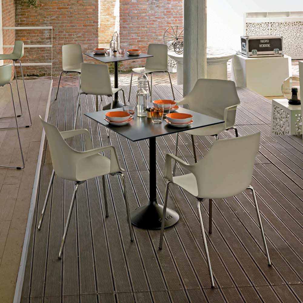 Stackable metal and polypropylene dining chair with armrests Made in Italy, 4 pieces.