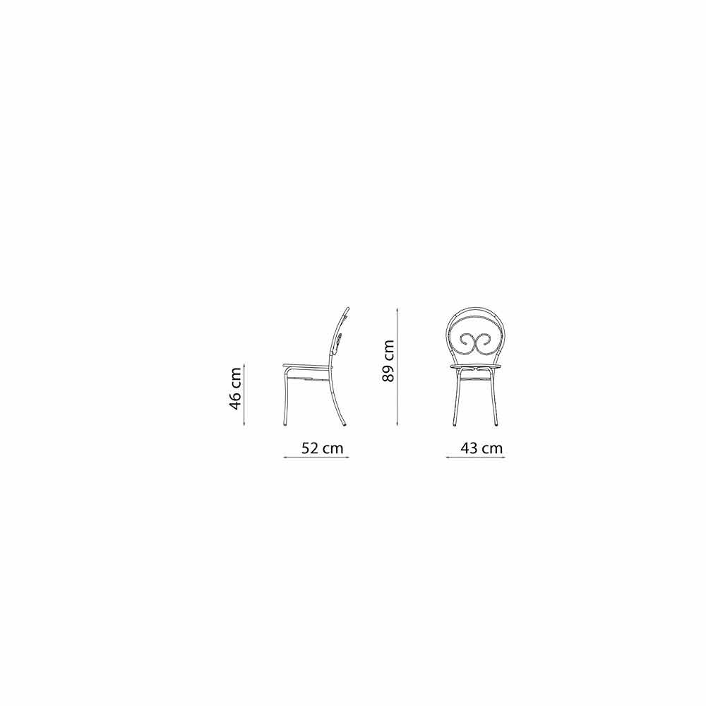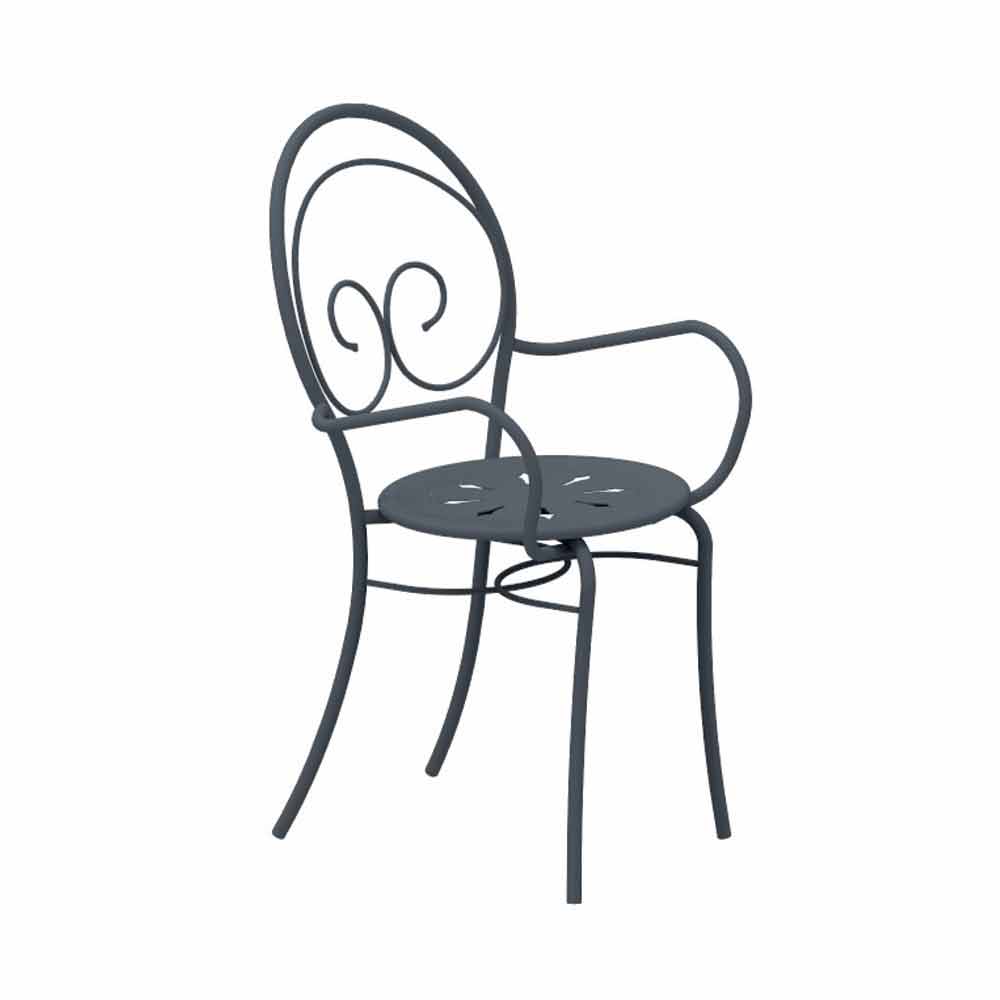 Stackable outdoor chair with or without armrests in powder-coated galvanized iron Made in Italy, 2 pieces.