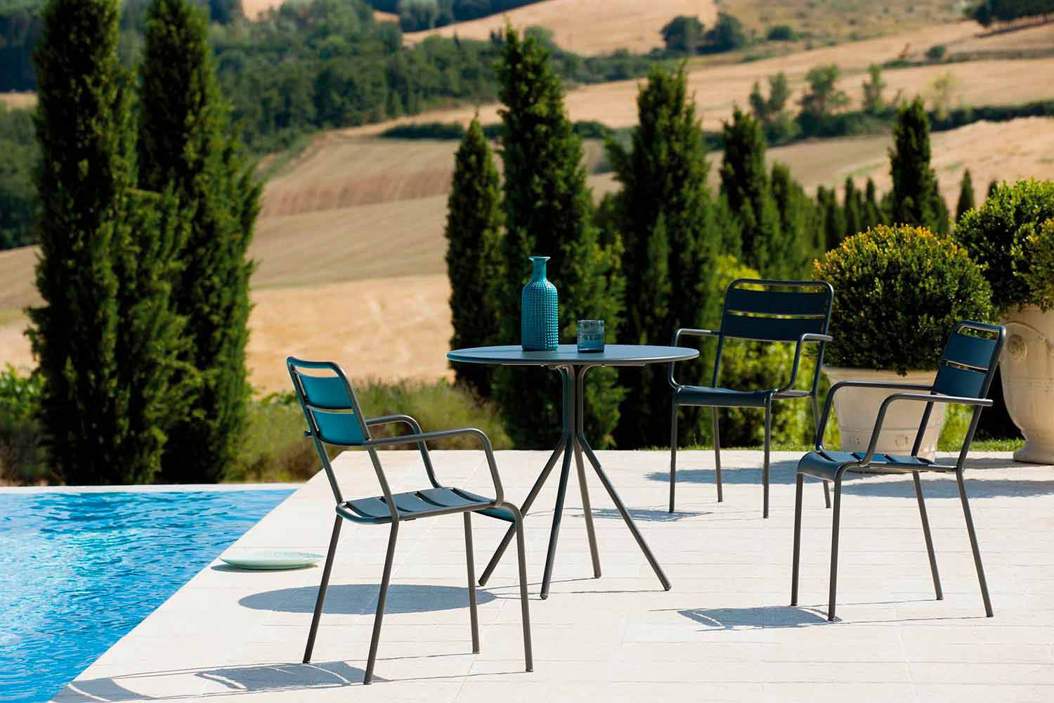 Stackable outdoor chair with or without armrests in powder-coated galvanized iron Made in Italy, 4 pieces.