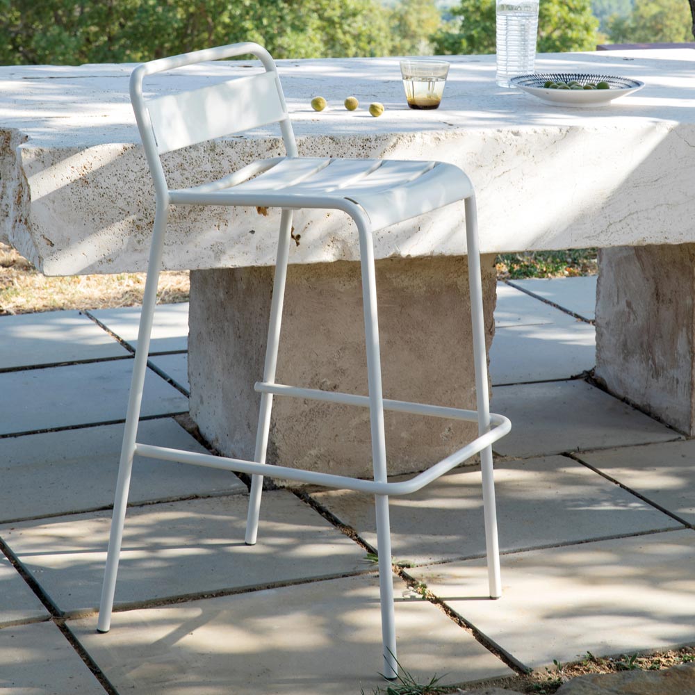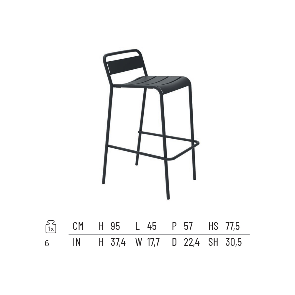 Stackable outdoor stool in powder-coated galvanized iron, colored galvanized Made in Italy.