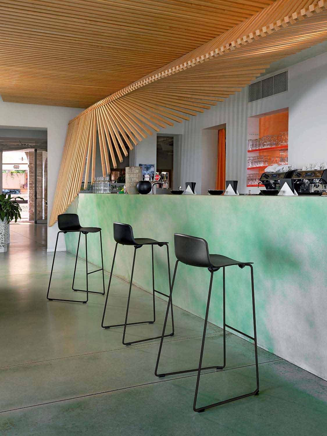 The Charla outdoor stool is characterized by a minimal and modern design that adapts perfectly to any style of furniture thanks to the versatility of the polypropylene shell available in 7 different colours.