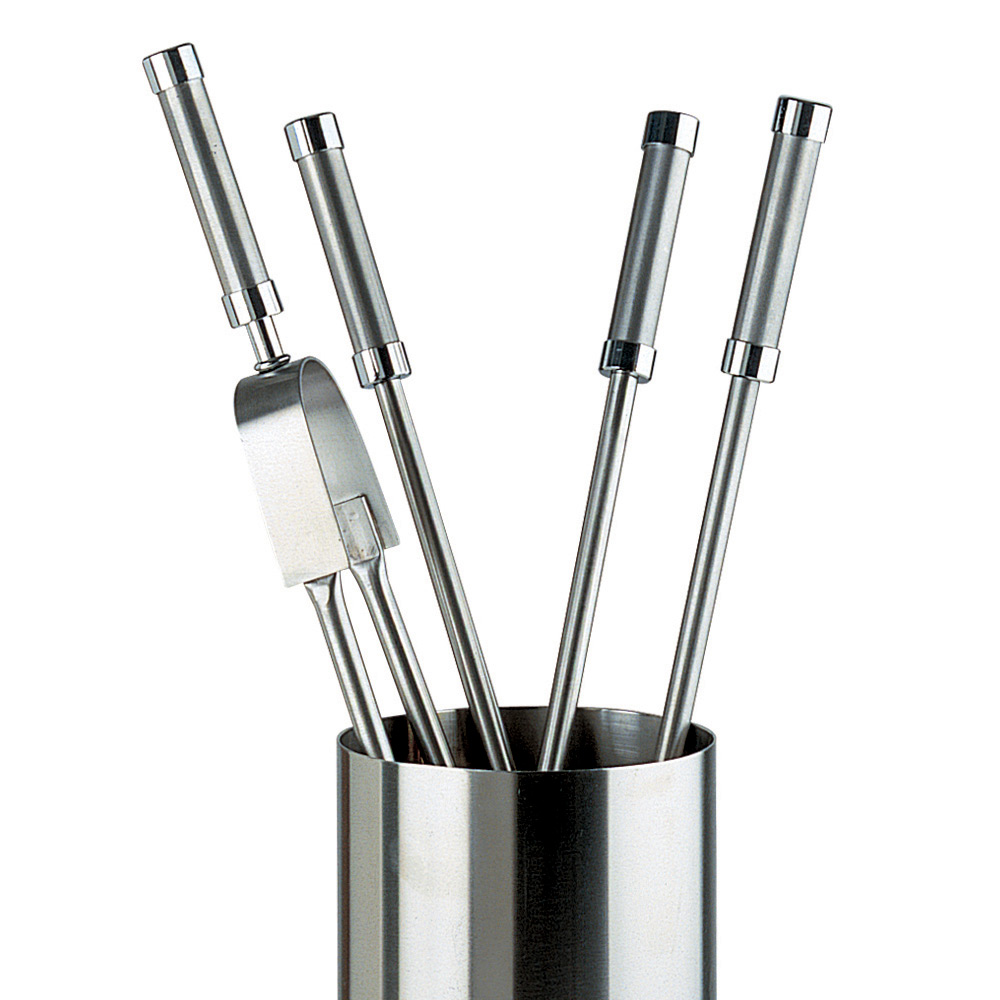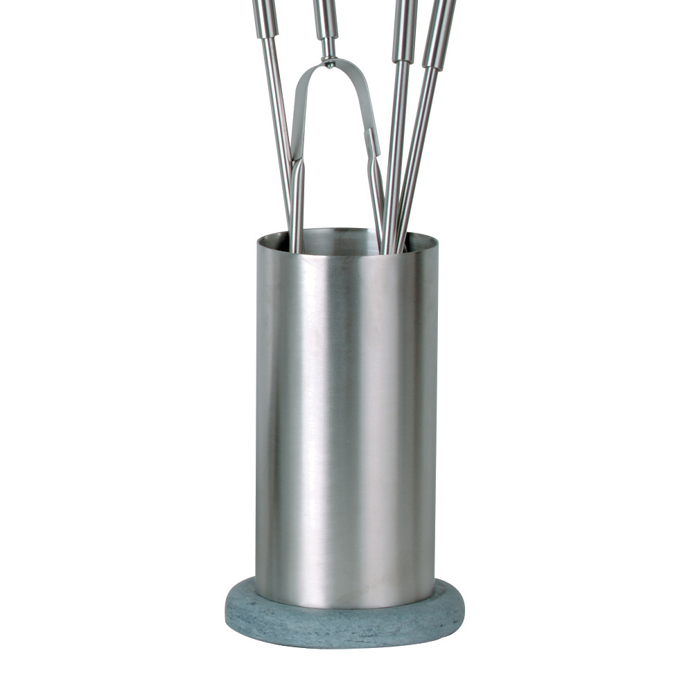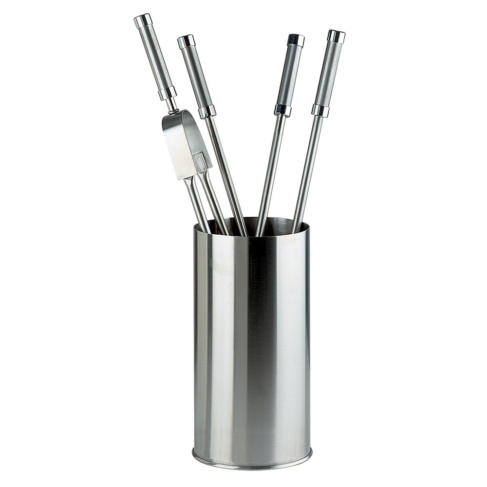Tough and long-lasting , this tool holder is designed to withstand heat and frequent use. Each utensil is finished with a handle that provides a comfortable and secure grip , allowing you to handle wood and ashes with ease and style. The cylindrical support ensures that each tool is always tidy and within reach, without sacrificing elegance.