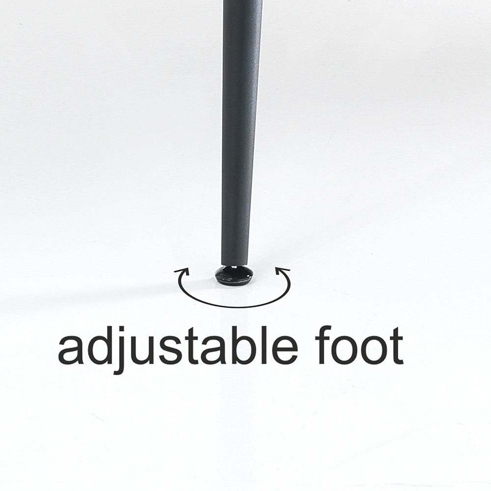 Dining table with MDF top covered in oak finish melamine (thickness 3.3cm) and legs with adjustable feet made of matt black painted steel . A minimal and modern design designed to furnish any living space in an essential way, bringing with it functionality and elegance . The combination of finishes and materials chosen enriches the product with personality and allows it to ensure solidity, stability and excellent durability over time . The result is therefore a cutting-edge dining table characterized by a marked versatility of use capable of completing any domestic or contract situation with personality.