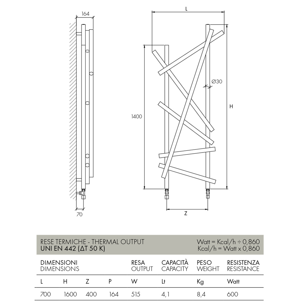 Made of sturdy and durable steel , this radiator is designed to ensure efficiency and durability. It is perfect not only for bathrooms and home spas but also for lounges or entrances, where the design can be appreciated as an integral part of the room's decor.