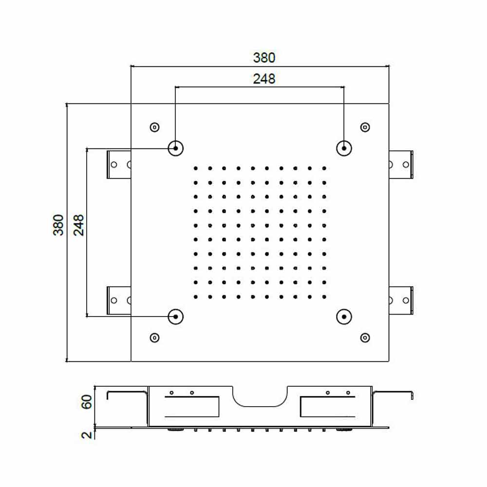 Square steel shower head with rain jet and nebulizers, high quality product Made in Italy.