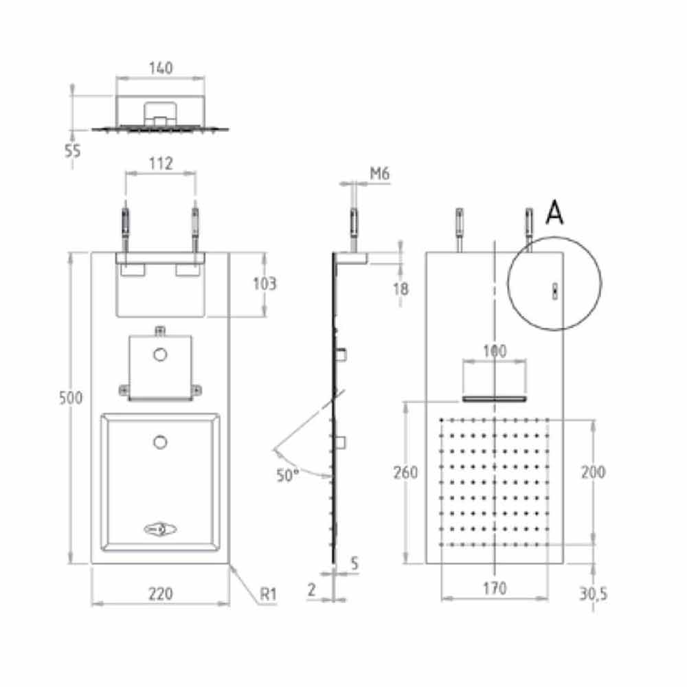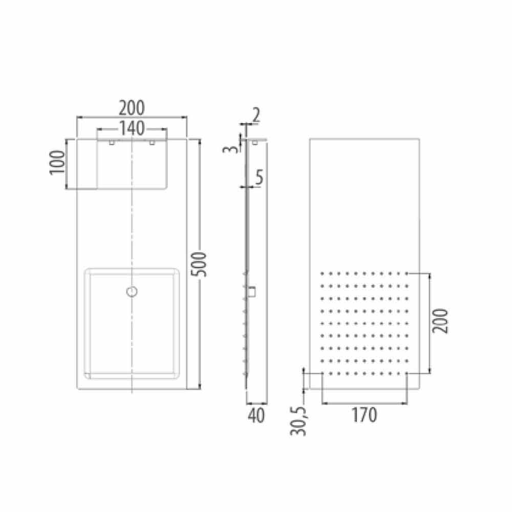 Ultraslim rectangular steel shower head with double jet Made in Italy.