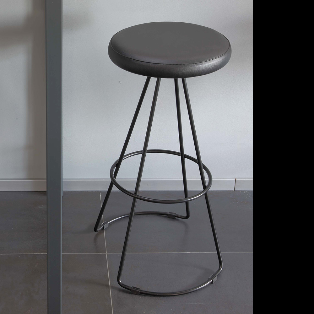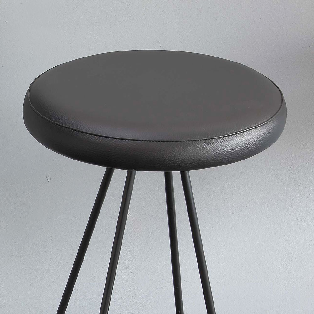 Indoor stool made with black eco-leather seat and black painted metal structure.