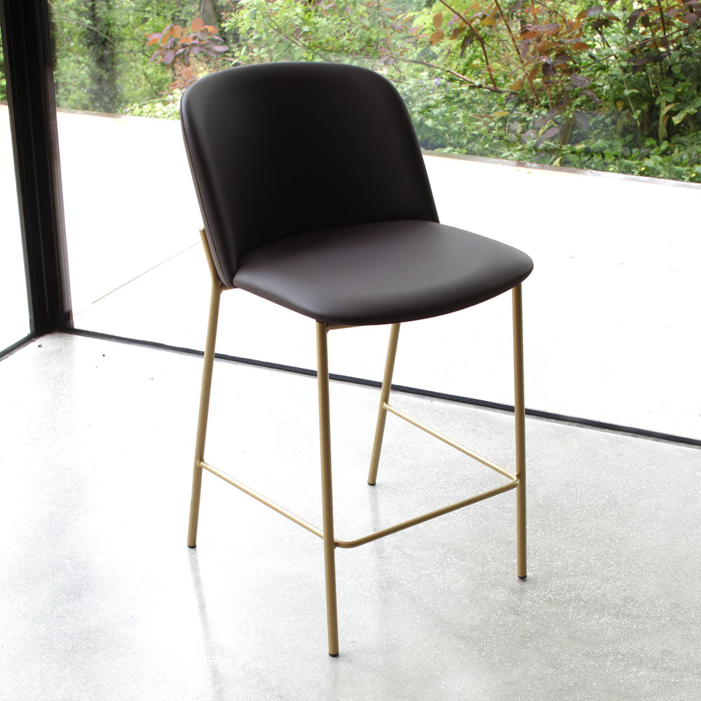 Made in Italy. Stool with a modern design, defined by soft queues that guarantee comfort and versatility. It is characterized by a covering available in numerous colour and material variations, which allow it to adapt to different furnishing styles. The powder-coated metal legs support an upholstered body, with matching stitching that contributes to the clean and elegant design of the product. This collection is ideal for those looking for furnishing elements with a contemporary design that do not compromise comfort.